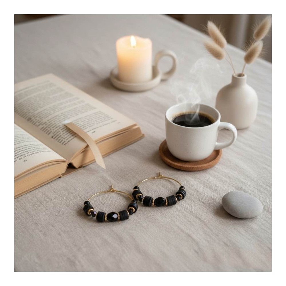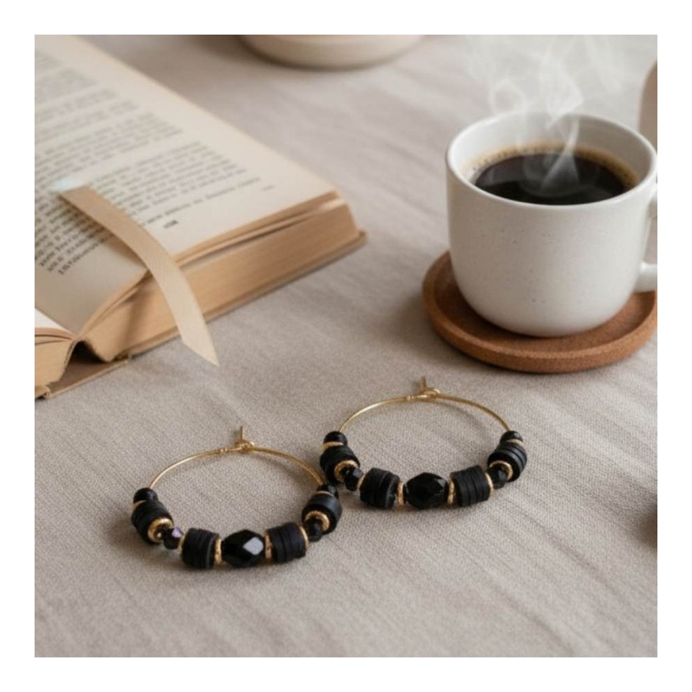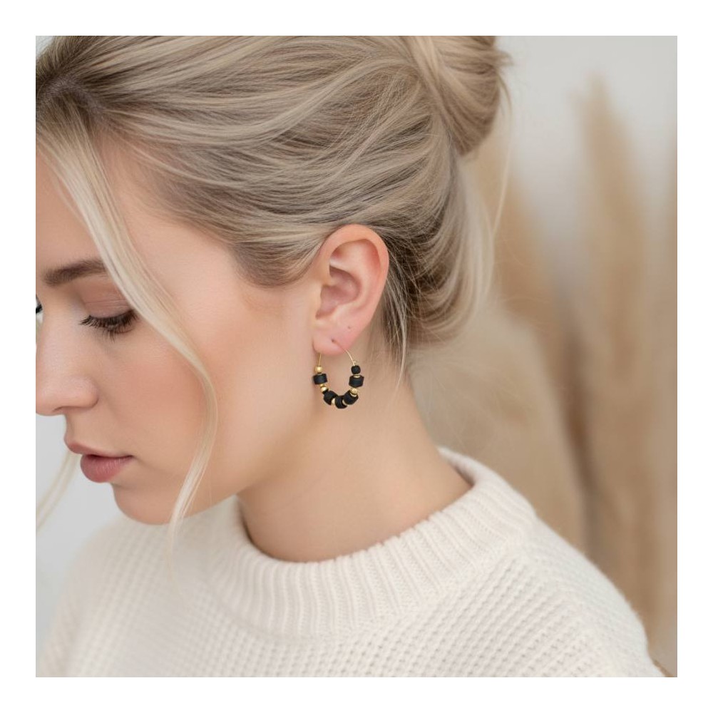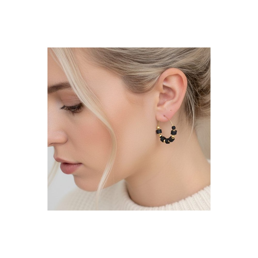 Boucles d'oreille créoles noir et or - Bijou précieux