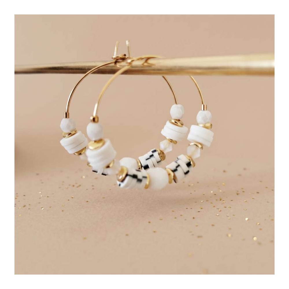 Boucles d'oreille créoles chics dans les tons blanc et doré.