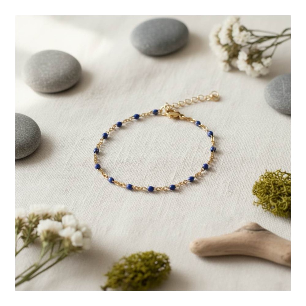 Bracelet fin petites perles bleu - Bijou précieux