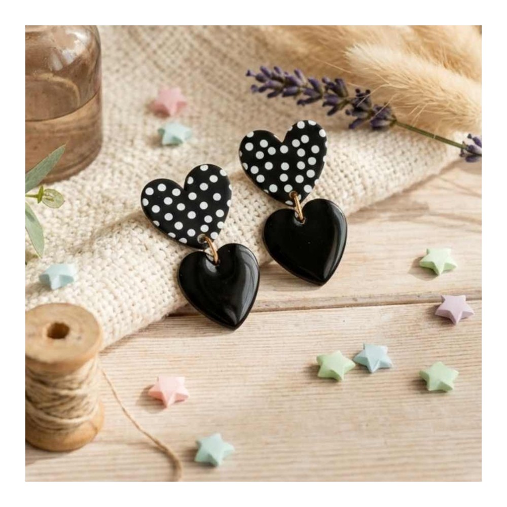 Boucles d'oreilles coeurs noir pois - Bijou tendance