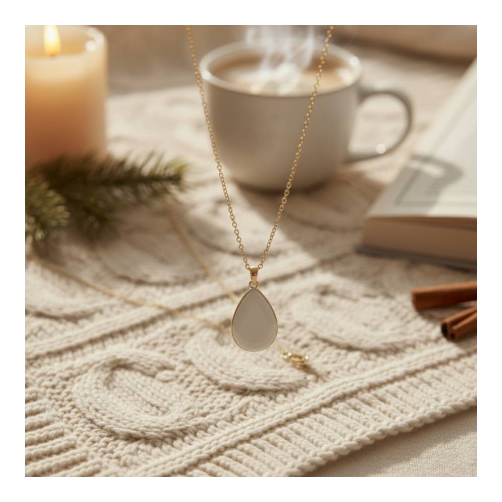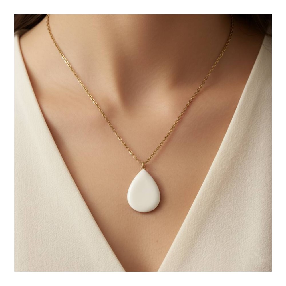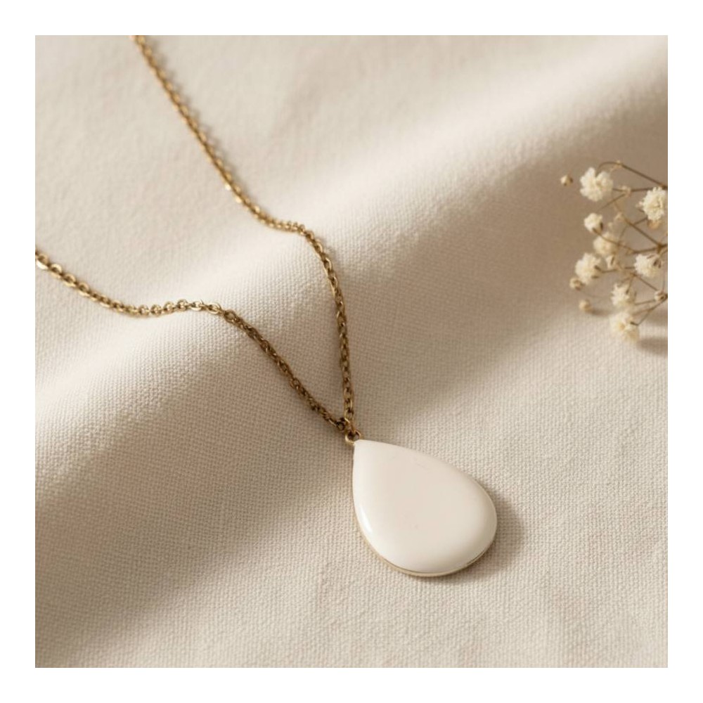 Un collier minimaliste orné d'un pendentif en émail blanc. Sa forme de goutte et sa simplicité font de ce collier un bijou intemporel qui s'accordera avec chaque pièce de votre garde robe ♥