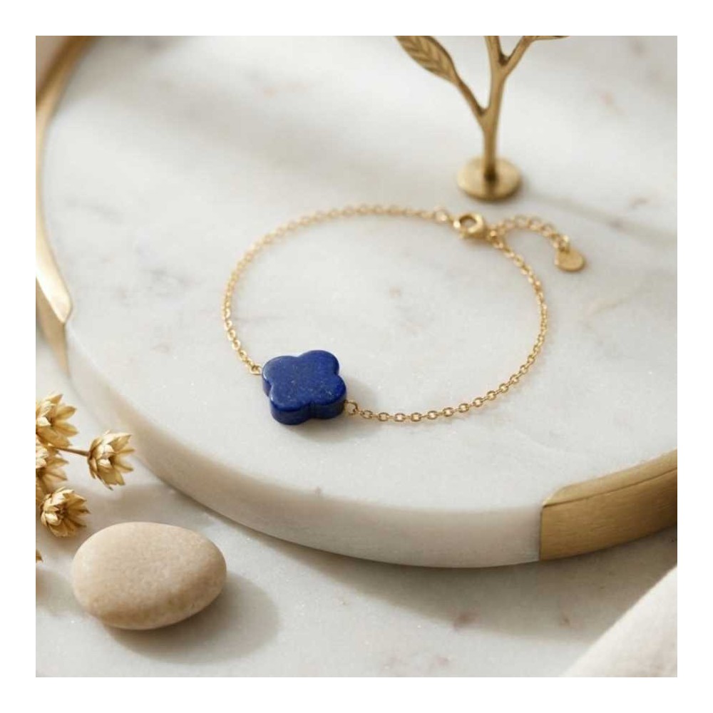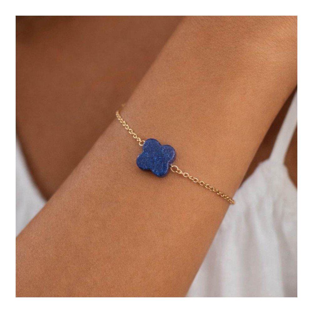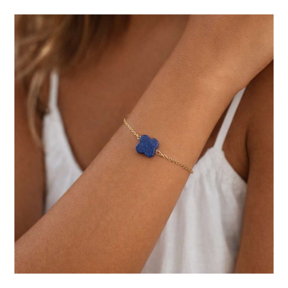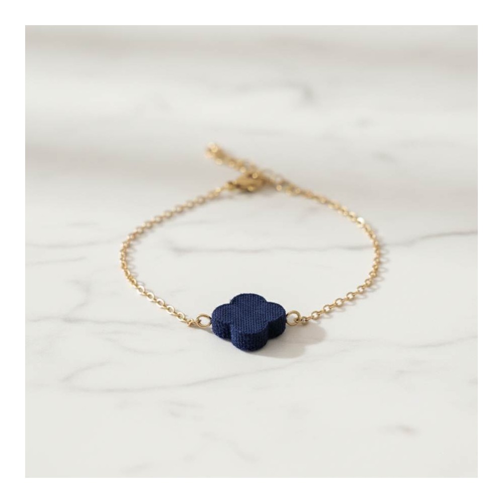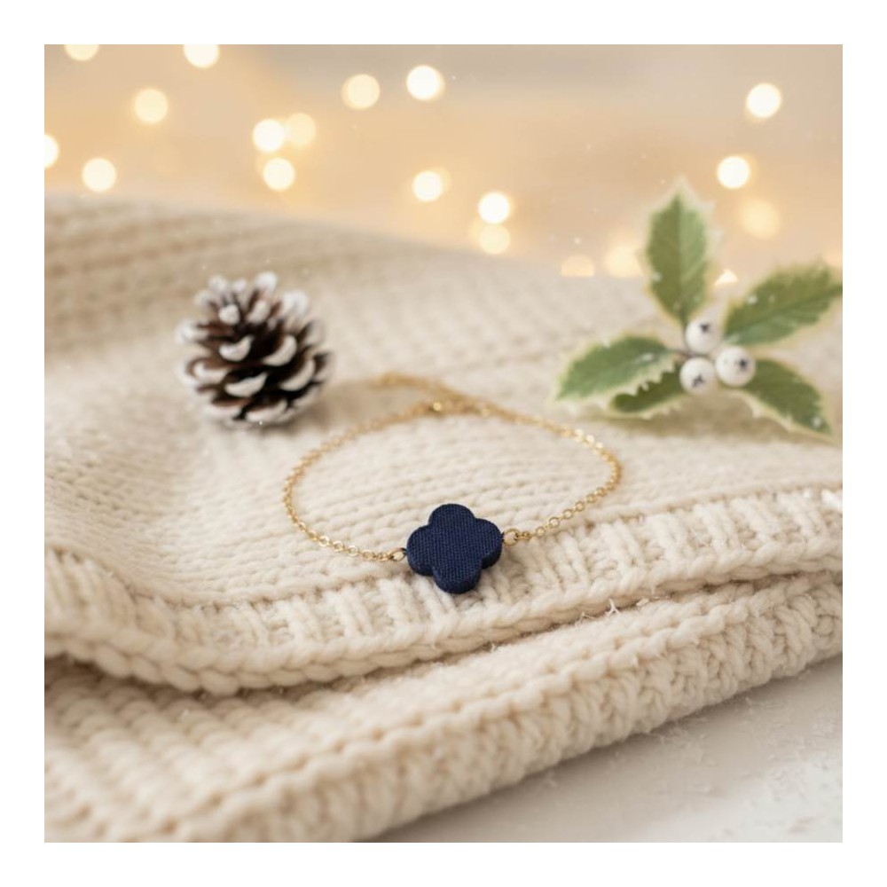 Bracelet porte-bonheur trèfle bleu marine - Bijou fin
