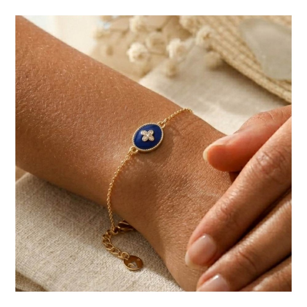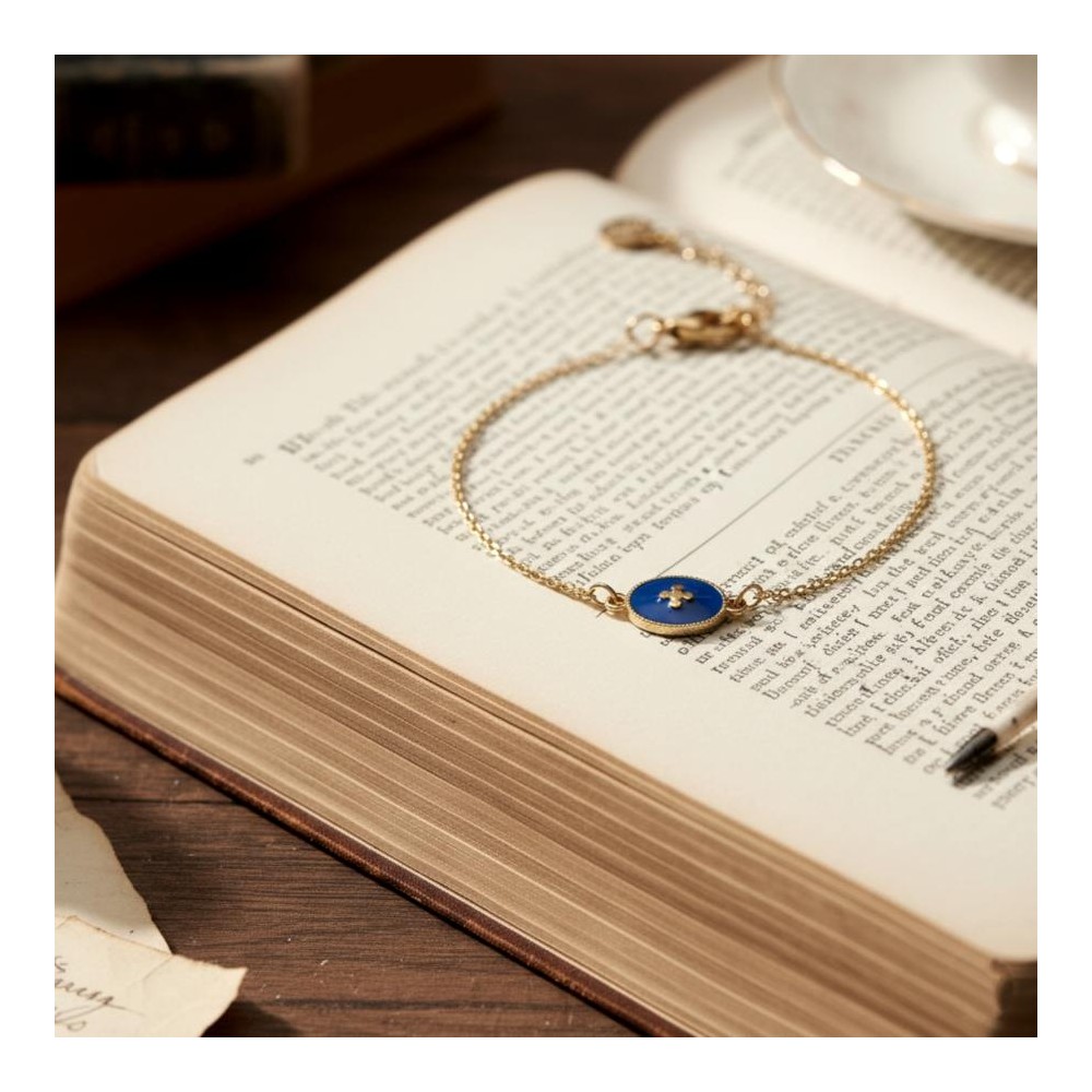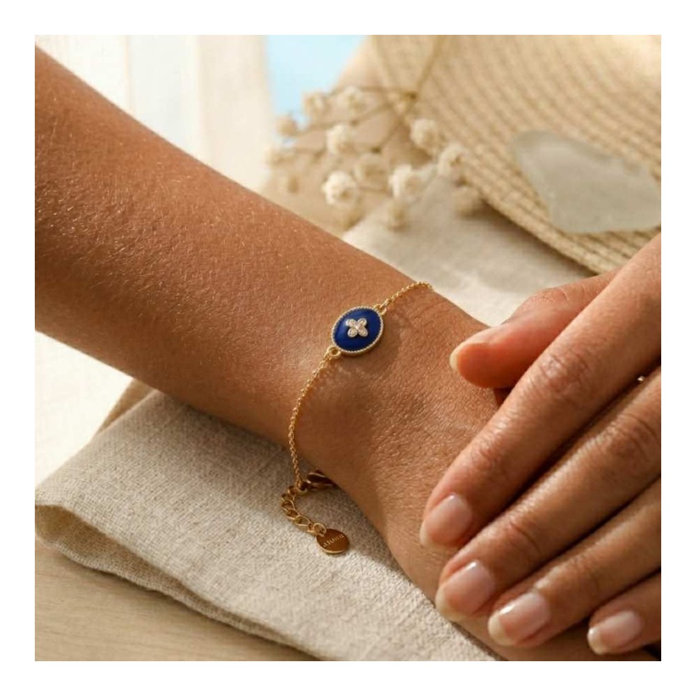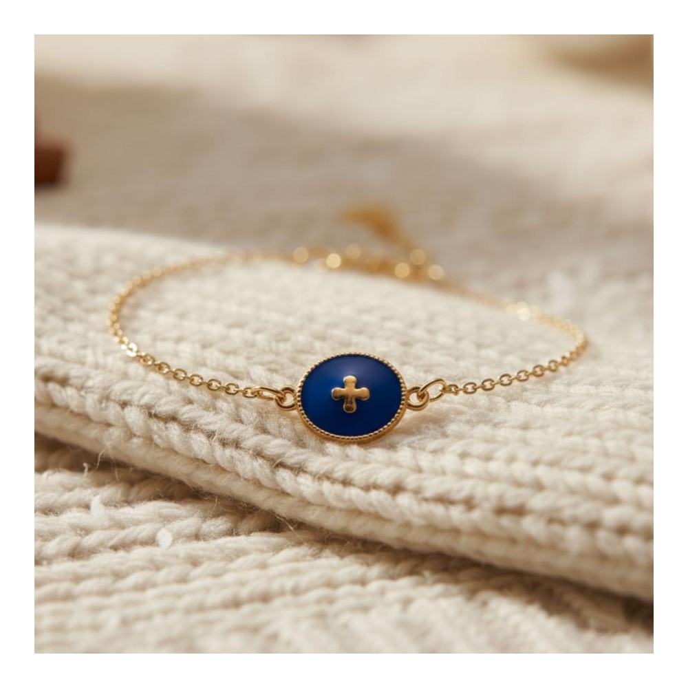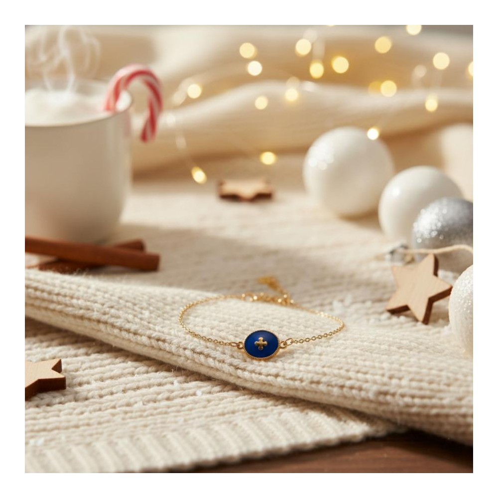 Bracelet bleu marine médaillon émaillé doré - Bijou fin