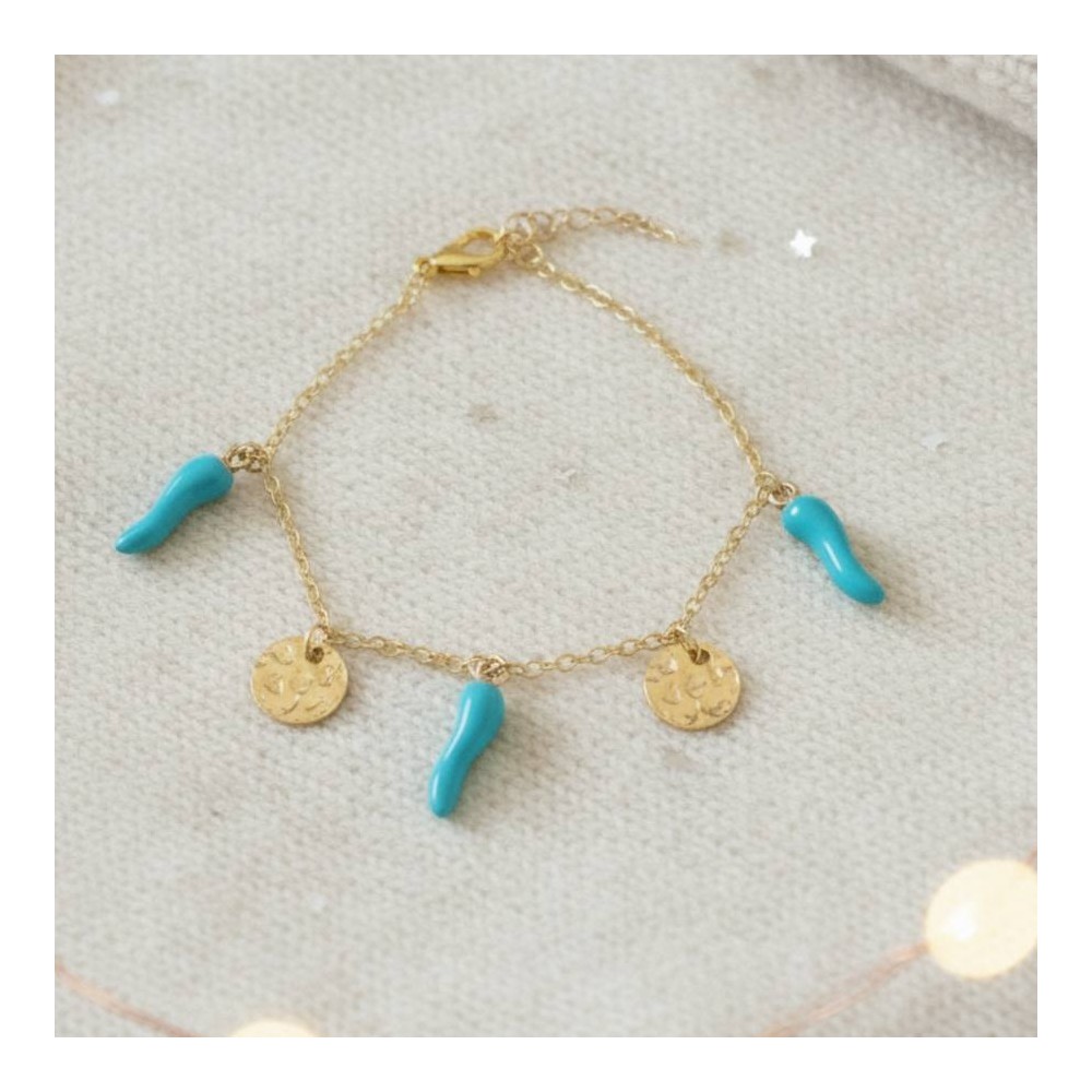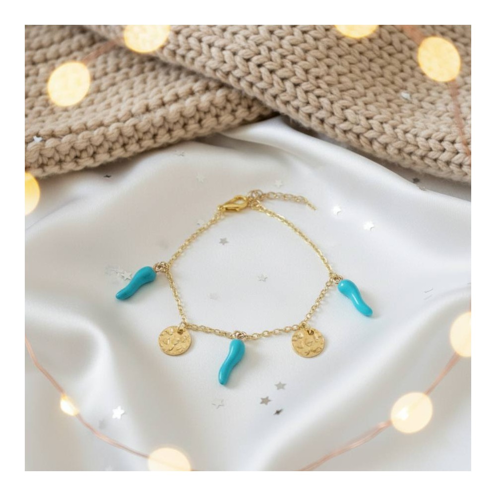Bracelet charms bleu turquoise doré - Bracelet breloques