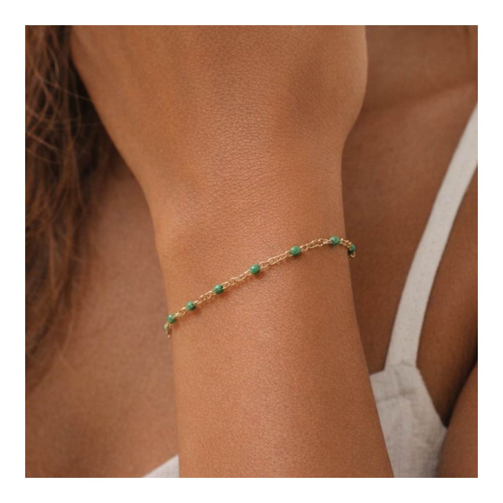 Bracelet fin petites perles vert - Bijou précieux