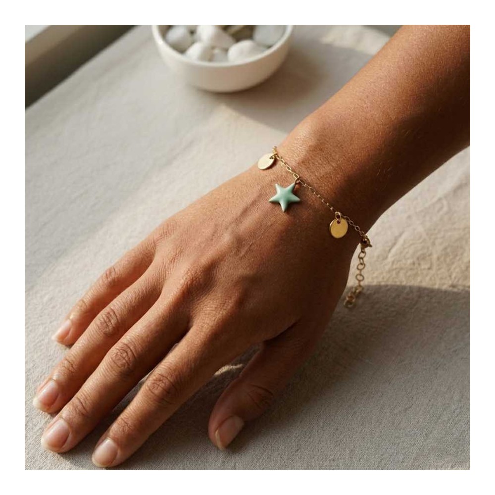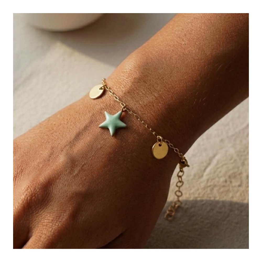 Un bracelet chic orné de jolies breloques étoile vert mint et pampilles dorées ! Orné de breloques charms qui vous feront craquer.