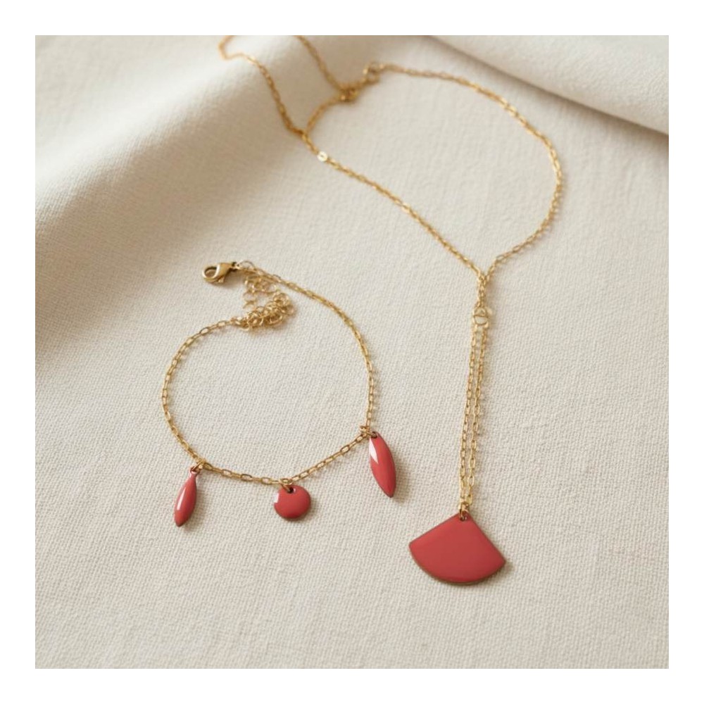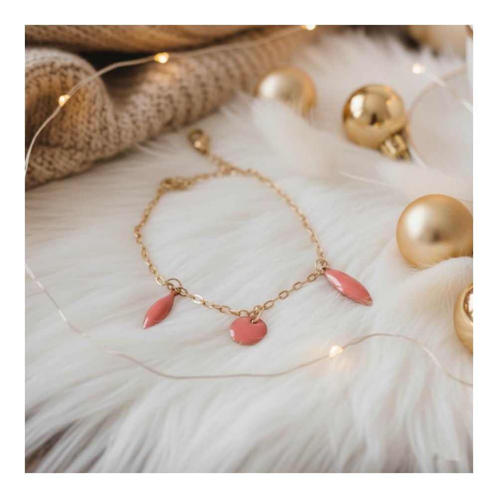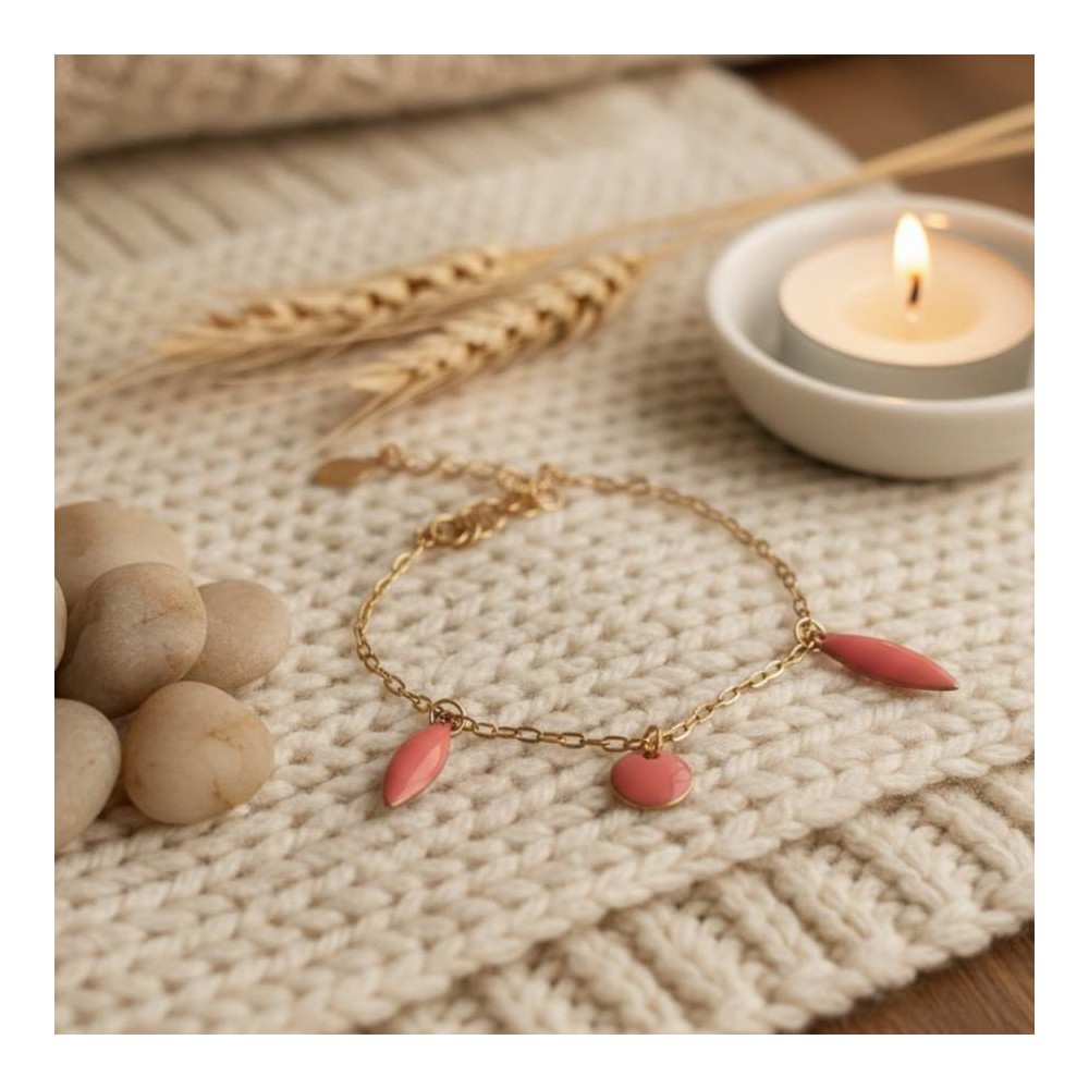 Un bracelet chic orné de jolies breloques couleur corail ! Orné de breloques charms qui vous feront craquer.