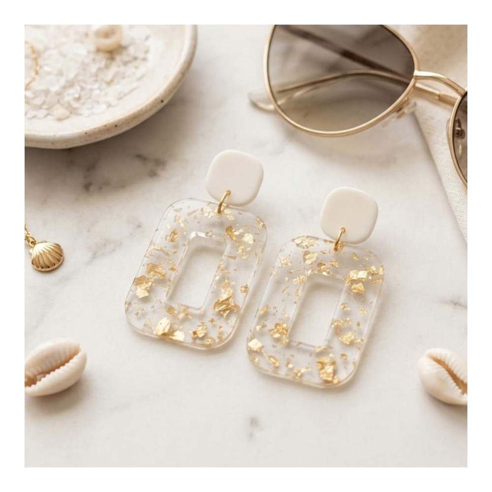 Boucles d'oreille pailletées or rectangle - Bijou précieux