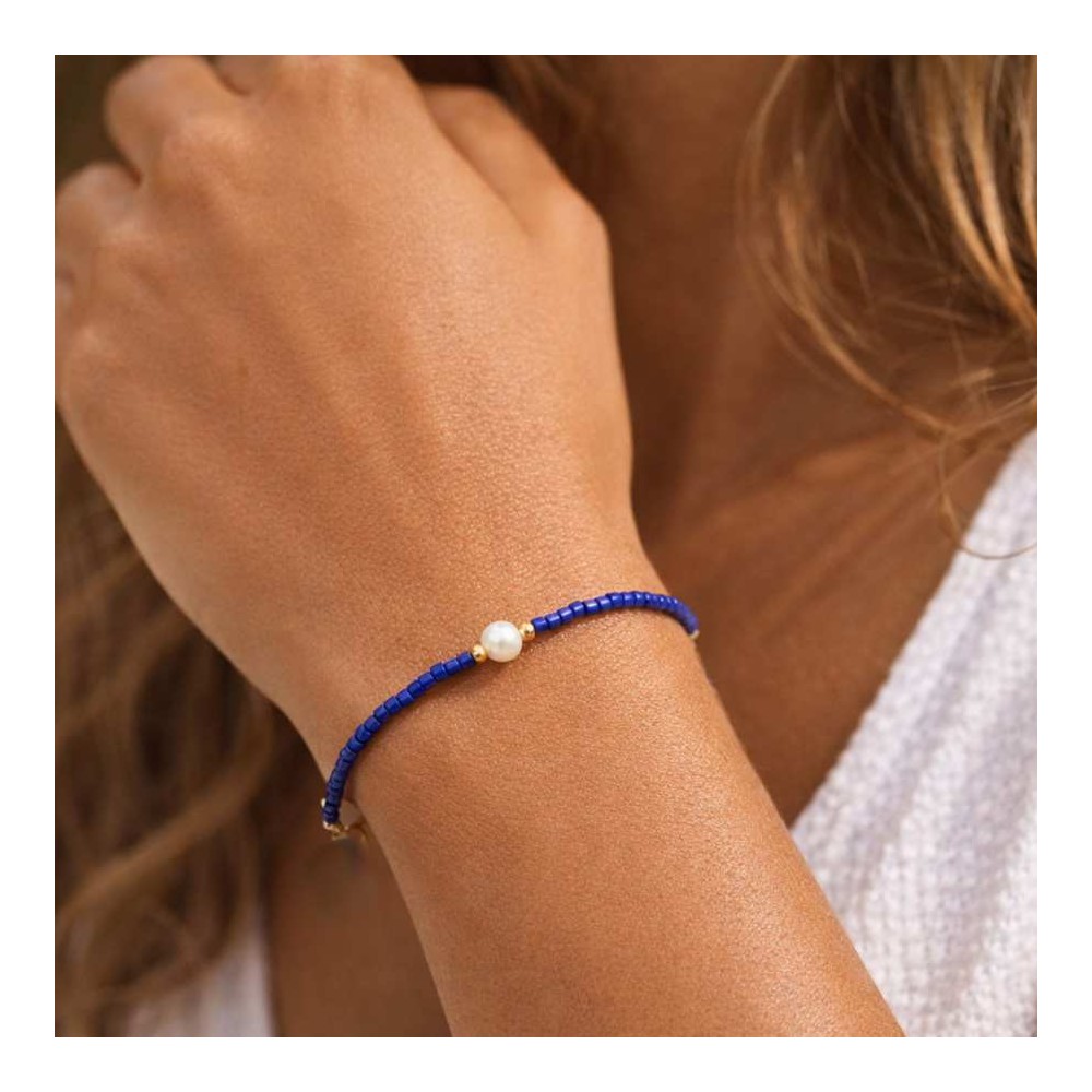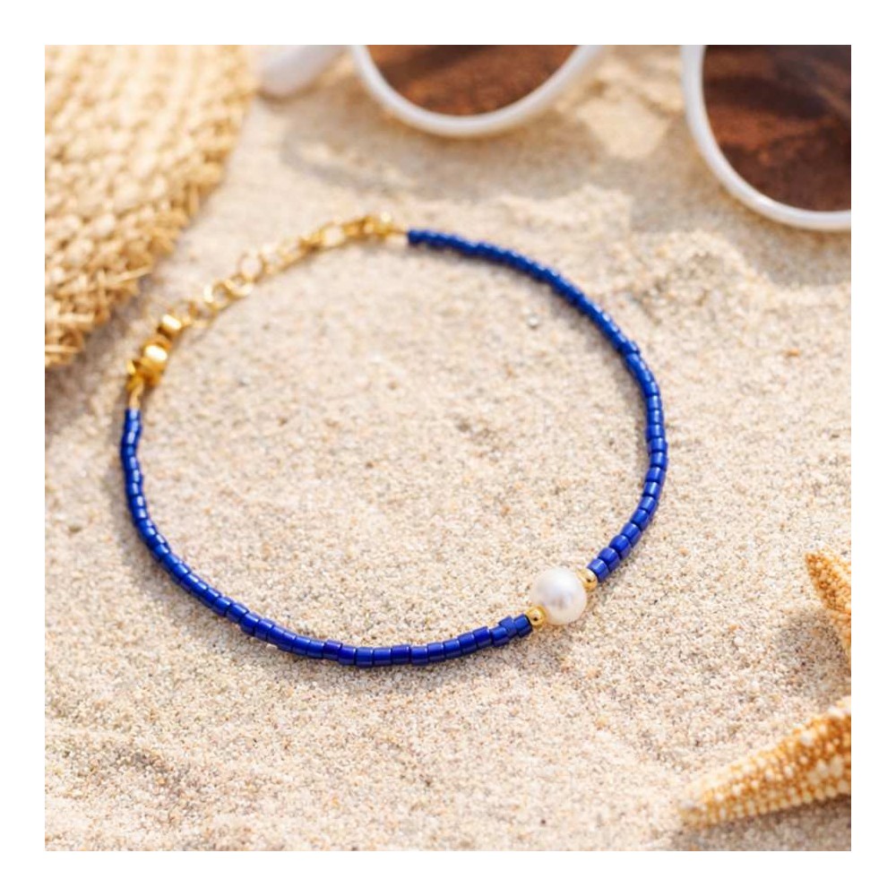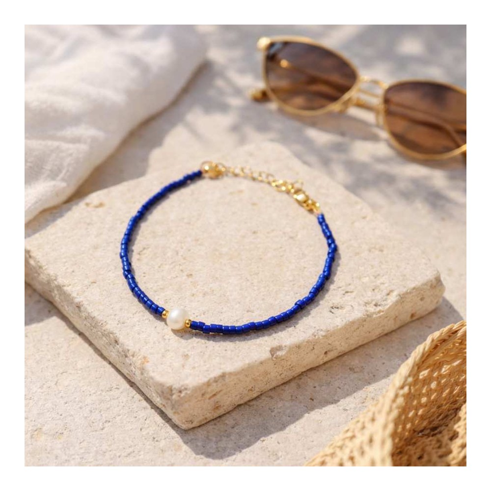 Bracelet Perle Eau Douce & Miyuki Bleu - Bracelet Minimaliste Ajustable