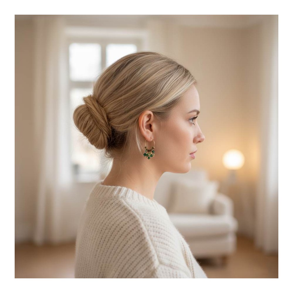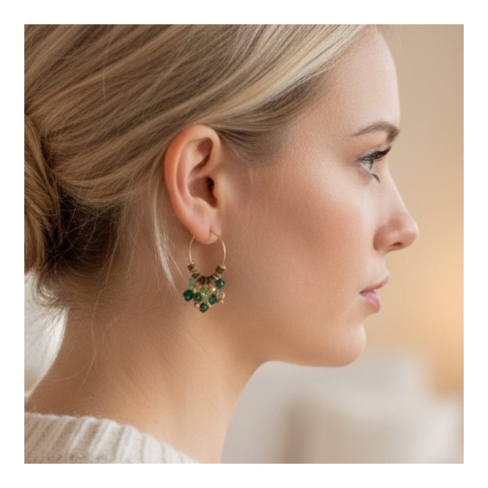 Boucles d'oreille bohèmes pampilles vertes - Bijou précieux