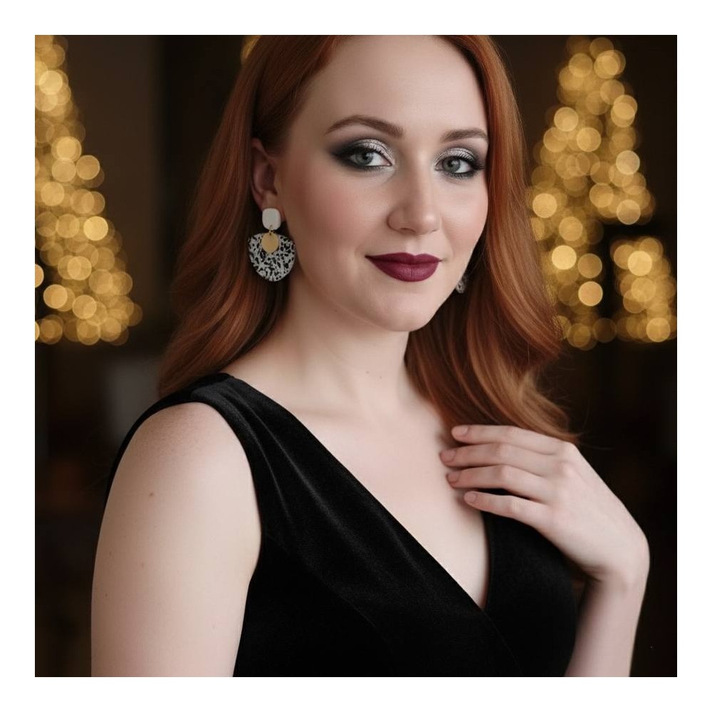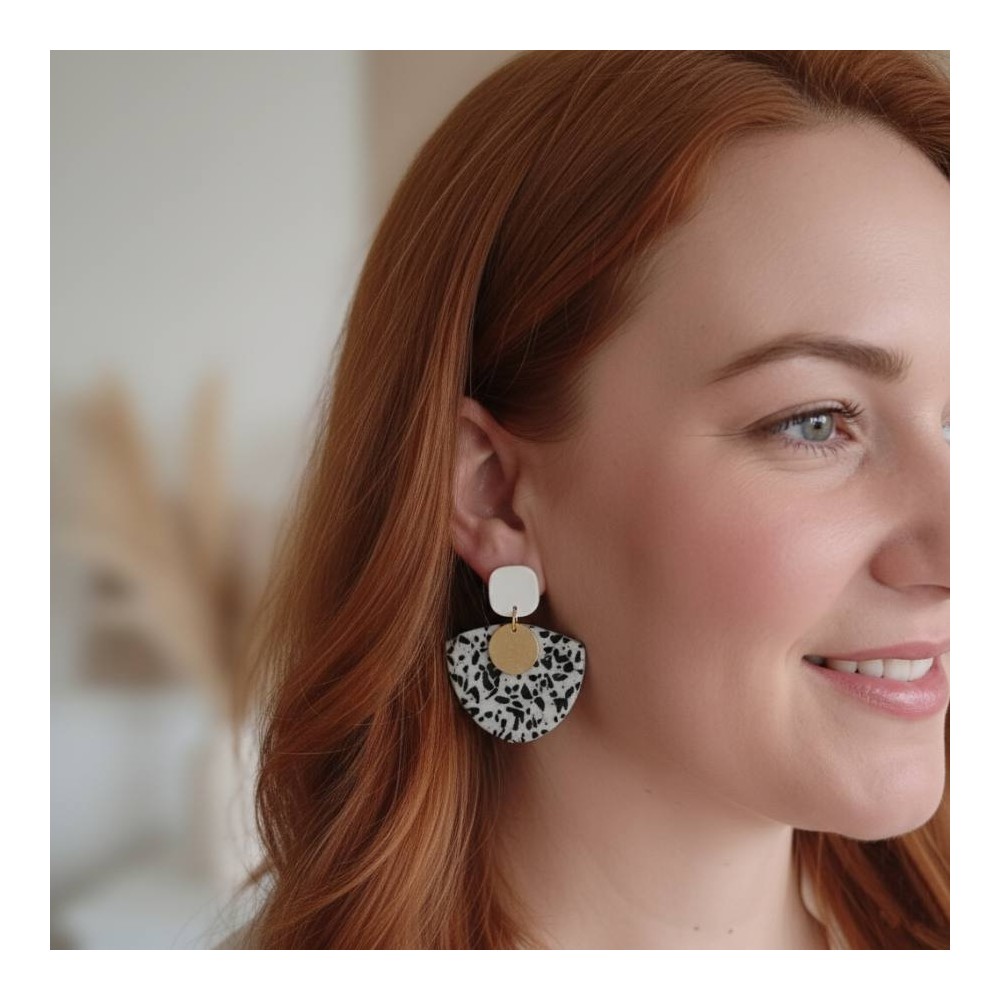 Boucles d'oreille soirée noir blanc or mouchetées - Bijou précieux