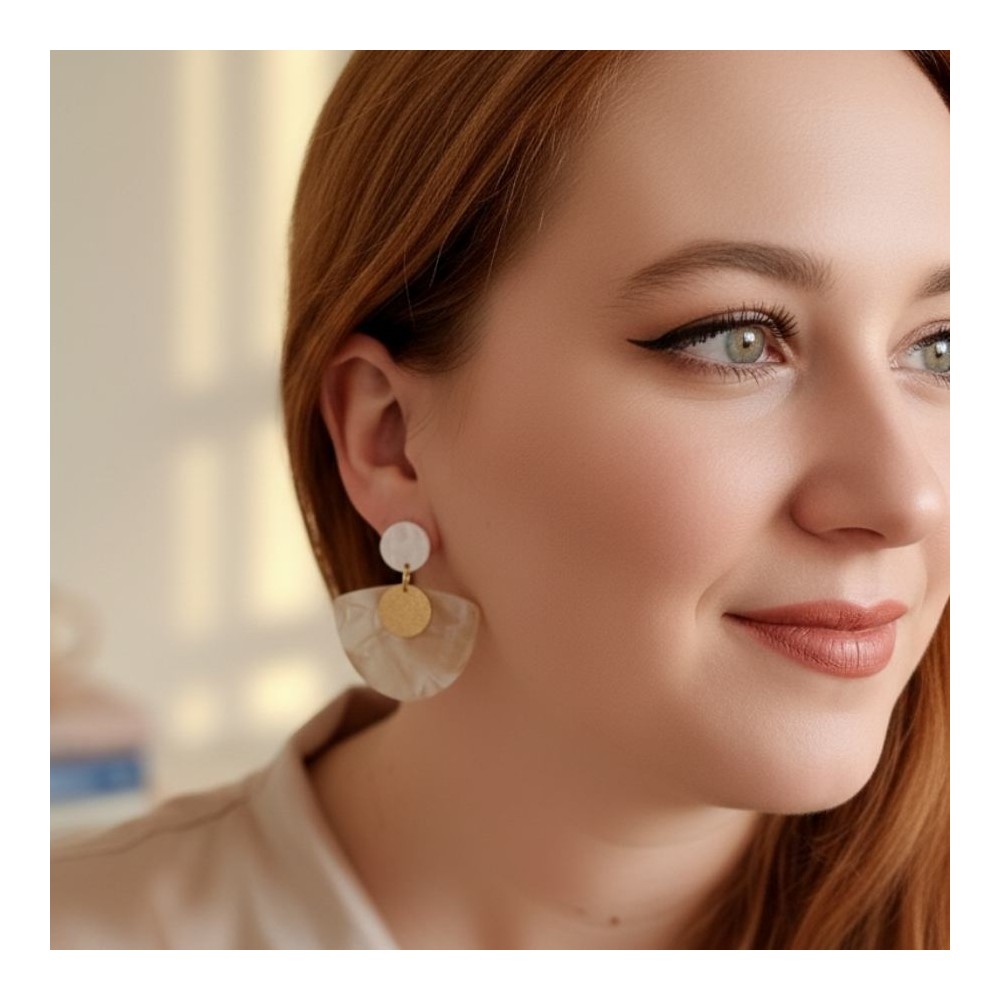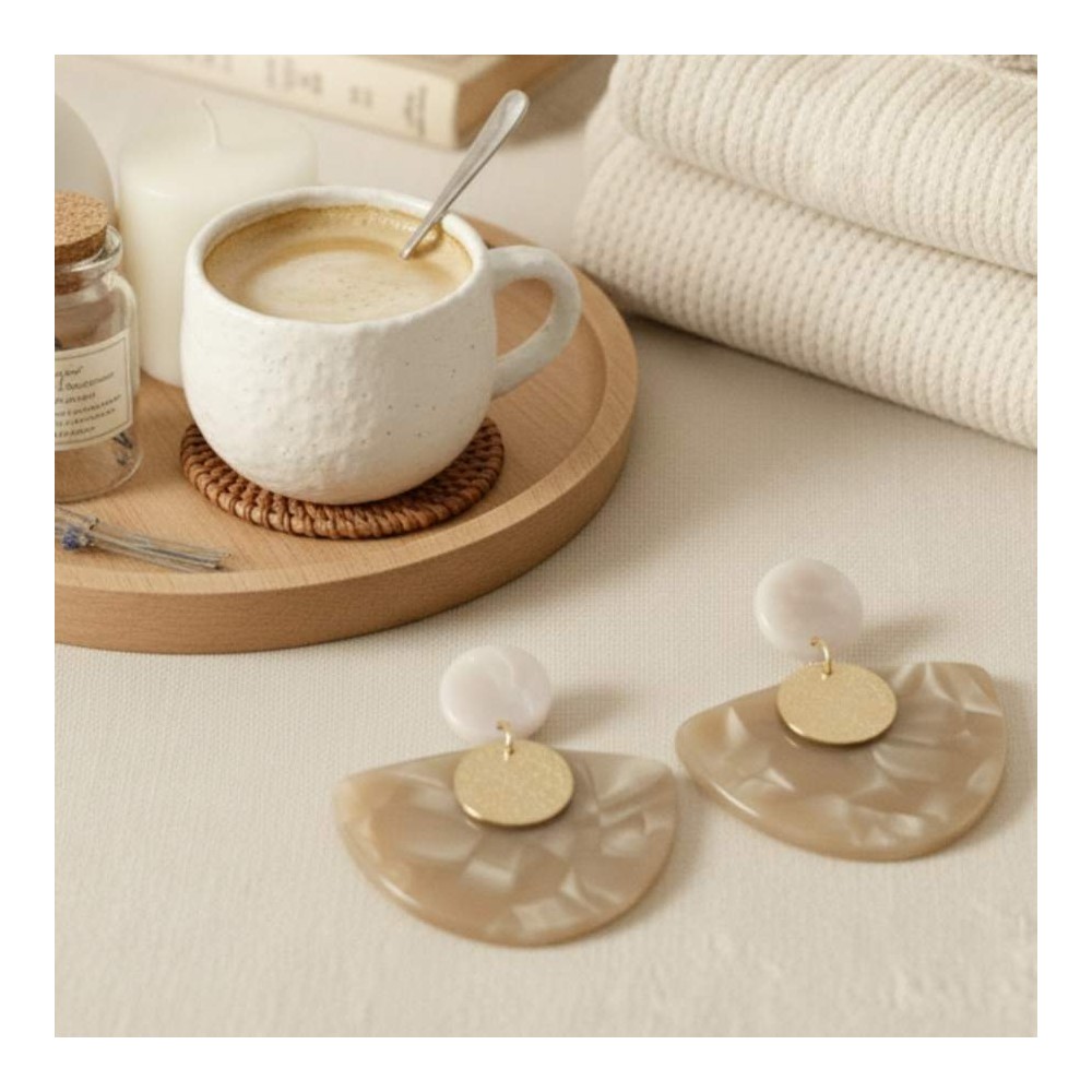 Des boucles d'oreille de soirée chics et originales avec leur pendentif beige effet marbré.