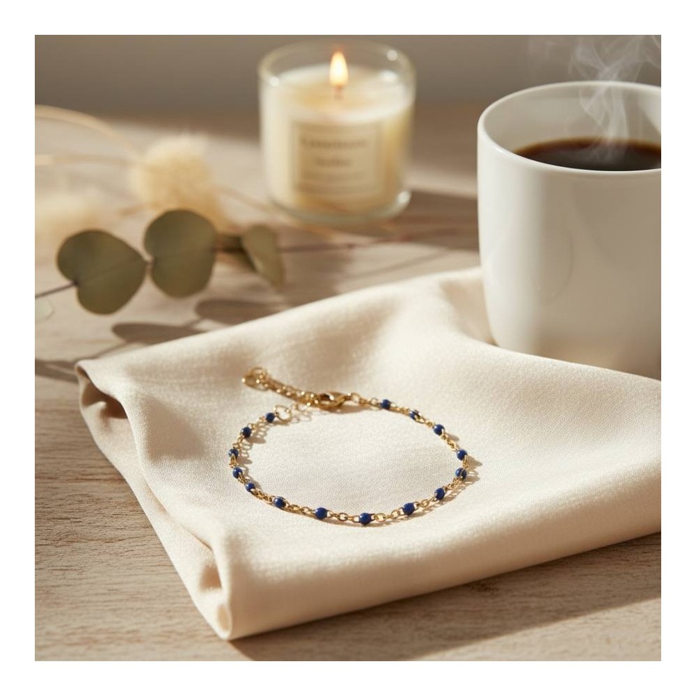 Bracelet fin petites perles bleu - Bijou précieux