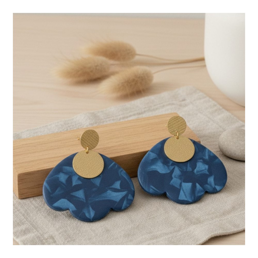 Boucles d'oreille pétales de fleur bleu - Bijou tendance