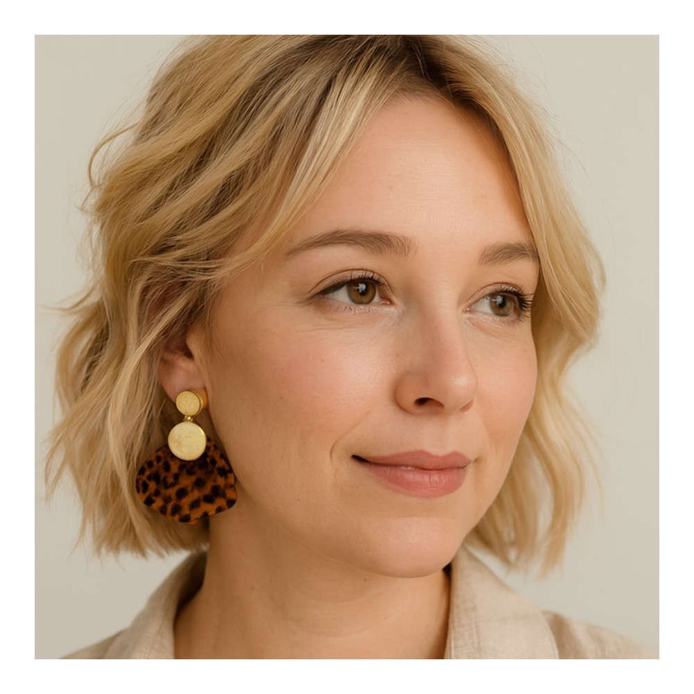 Tombez sous le charme de nos boucles d'oreilles "Pétale Fauve" ! Ce bijou tendance marie avec audace la délicatesse florale et l'intensité du motif léopard pour une allure résolument trendy.