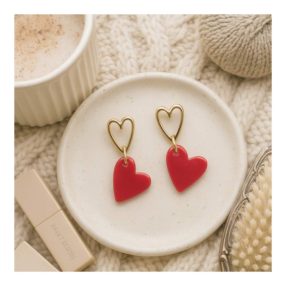 - ♡ Boucles en acier inoxydable doré à l'or fin, coeurs en résine
