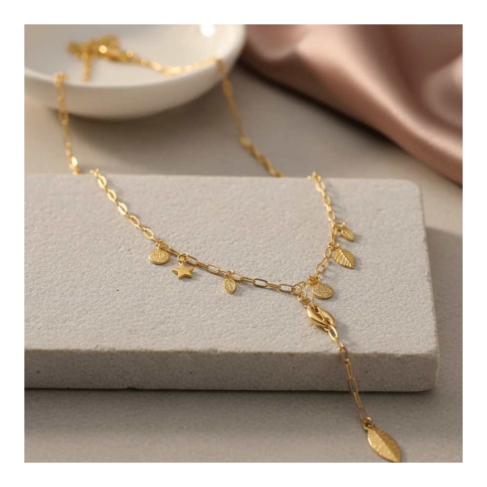 Collier Y lasso charms pendentifs doré "Naomi" - Bijou créateur