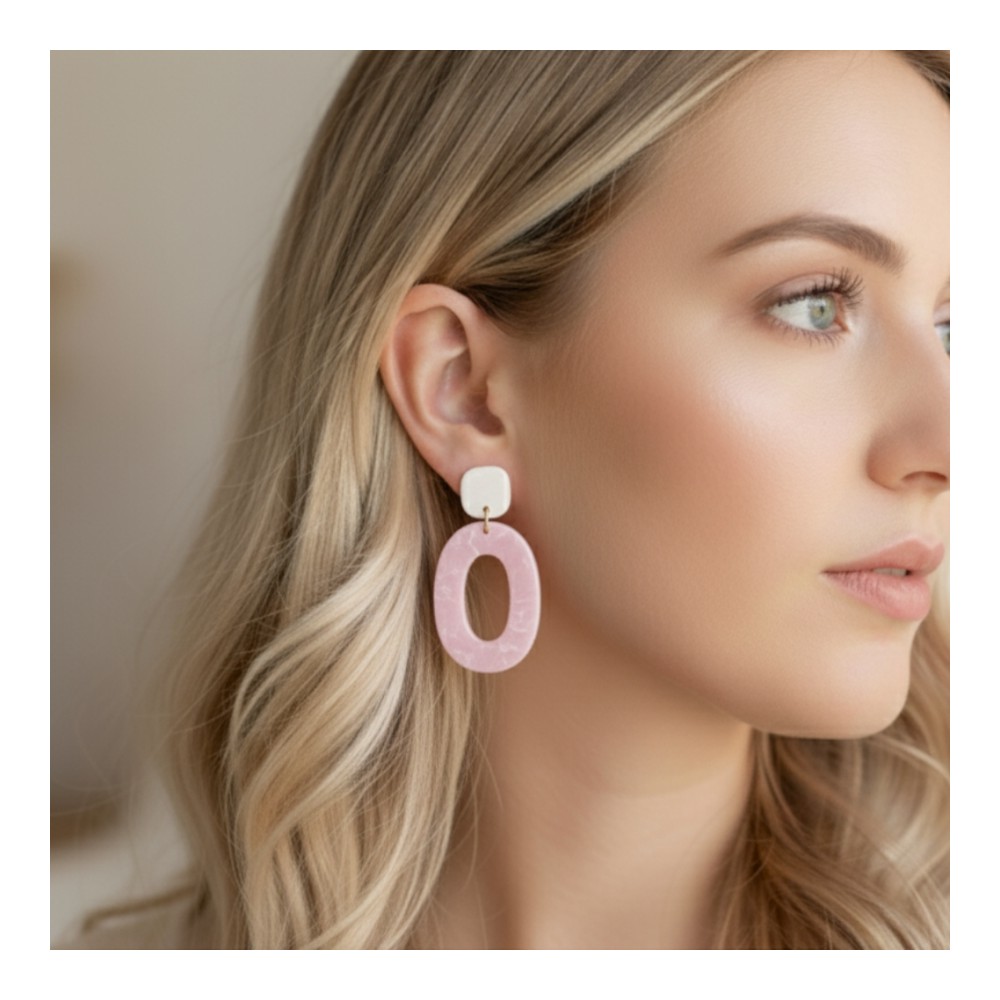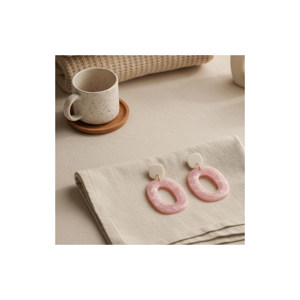 Des boucles d'oreille originales et chic ornées d'un pendentif en résine acrylique rose pâle nacré. A assortir avec votre tenue du jour ;)