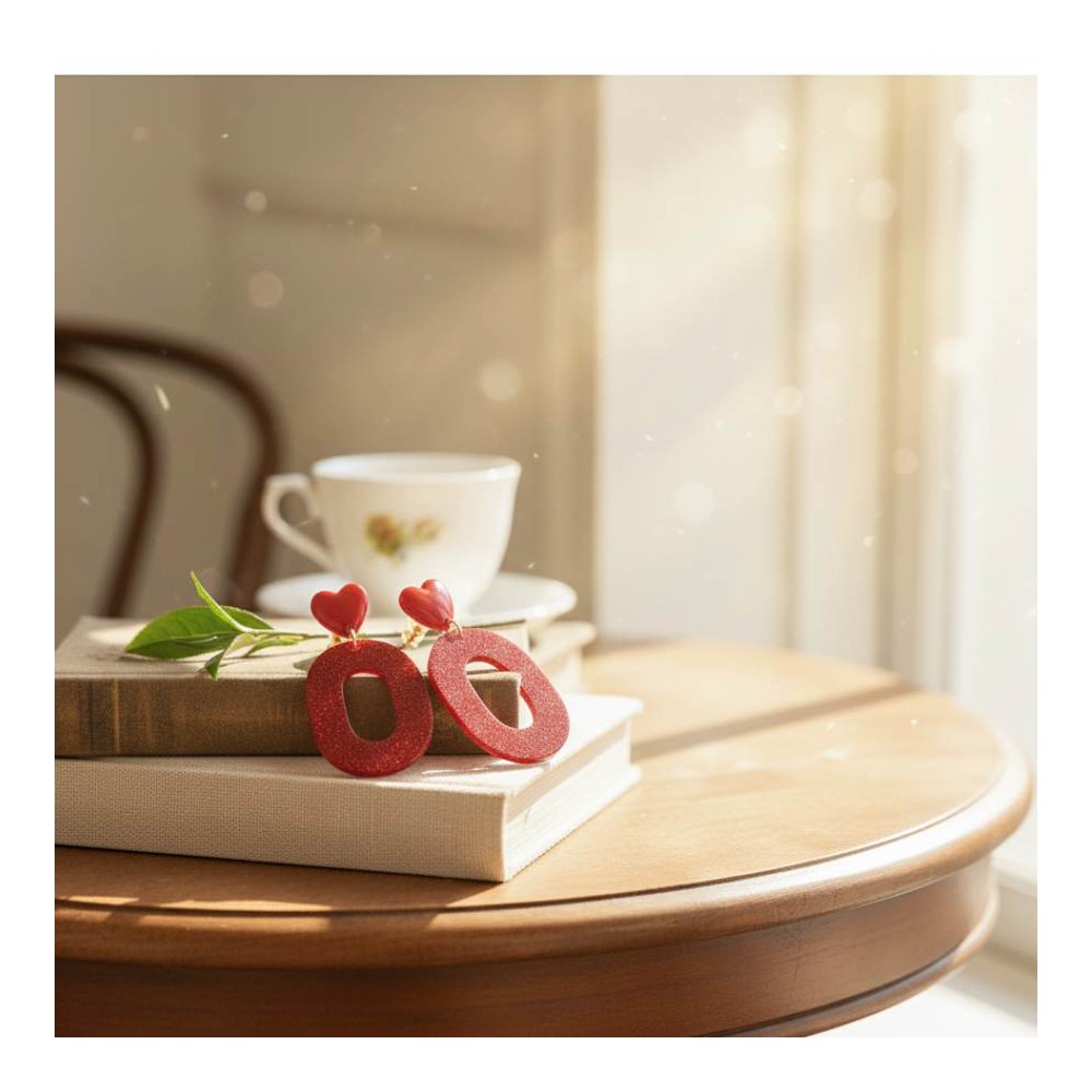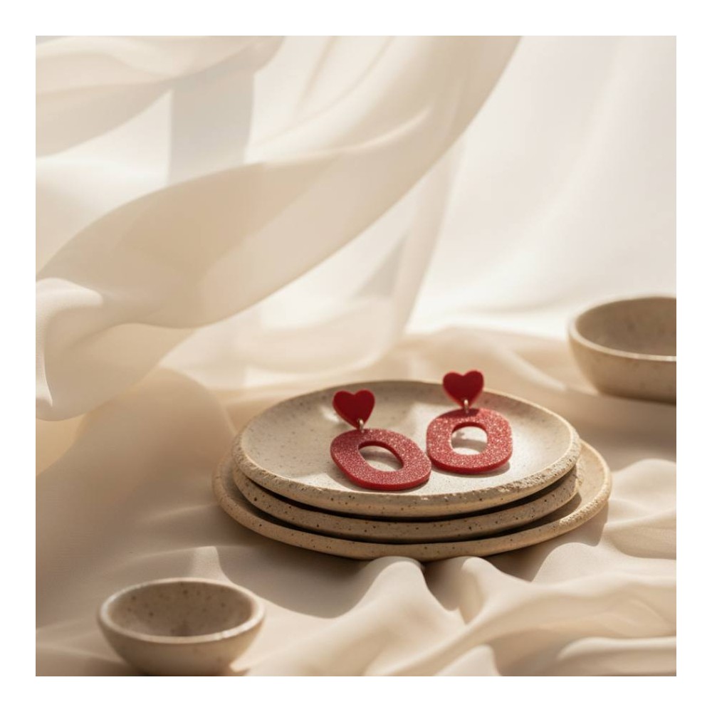 - ♡ Tiges des boucles en acier inoxydable, pendent Ô et coeurs en résine acrylique