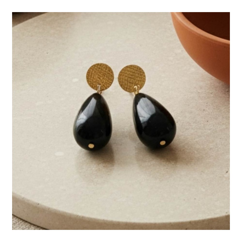 Boucles d'oreille perles goutte noire - Bijou bohème tendance