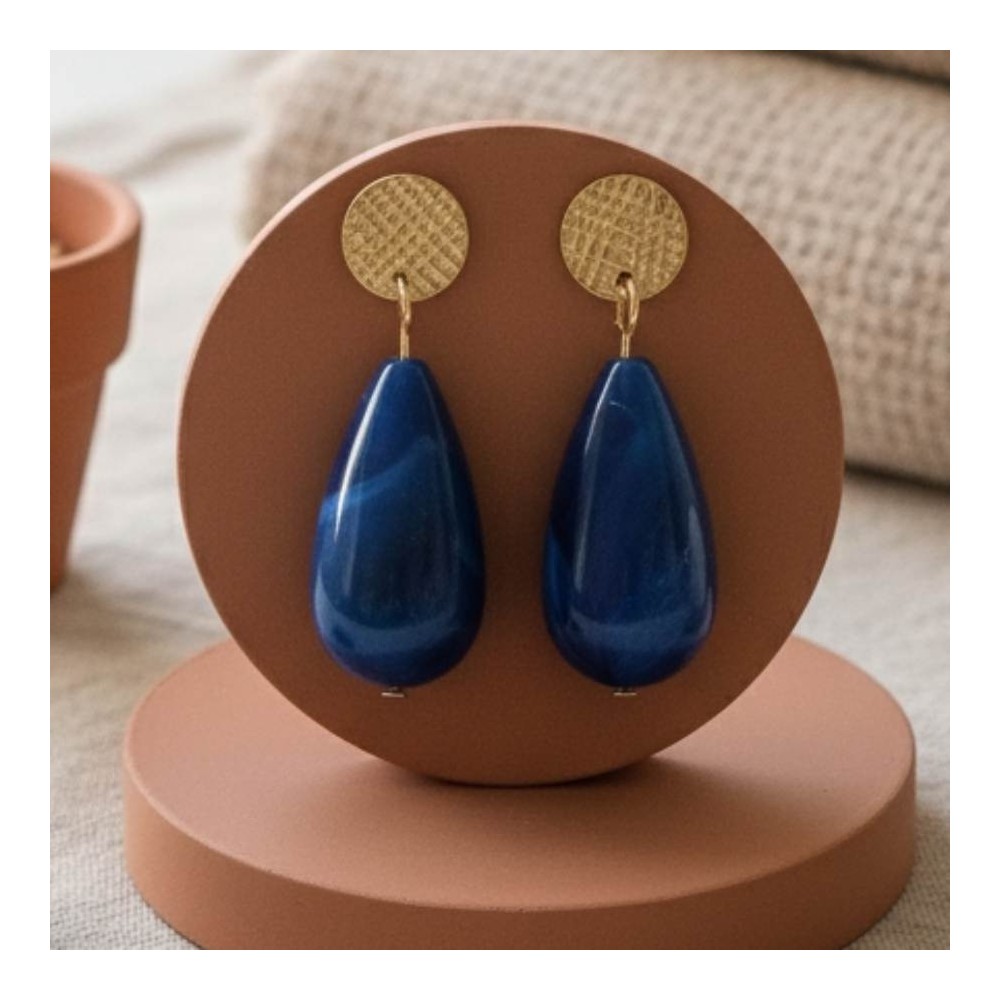 Boucles d'oreille perles goutte bleu foncé- Bijou bohème tendance