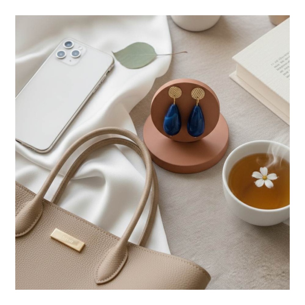 Des boucles d'oreille chics ornées d'une perle en forme de goutte bleu foncé