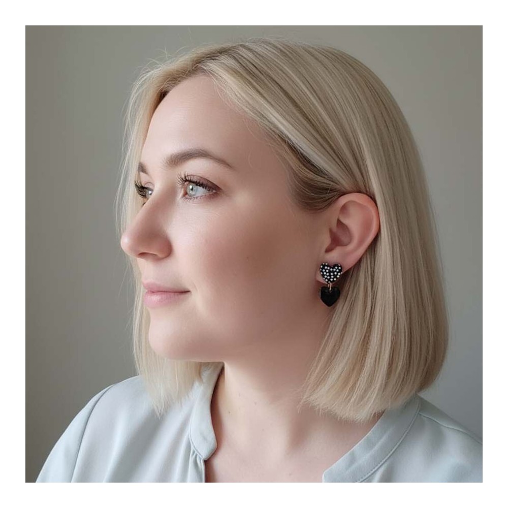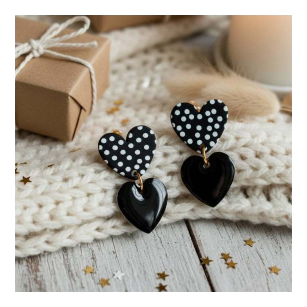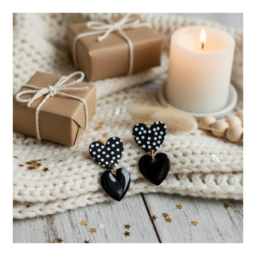 Boucles d'oreilles coeurs noir pois - Bijou tendance