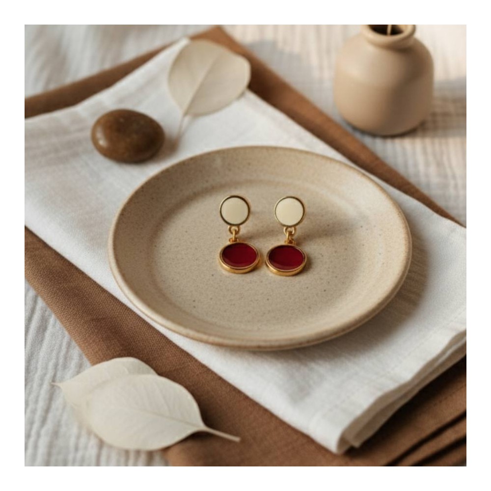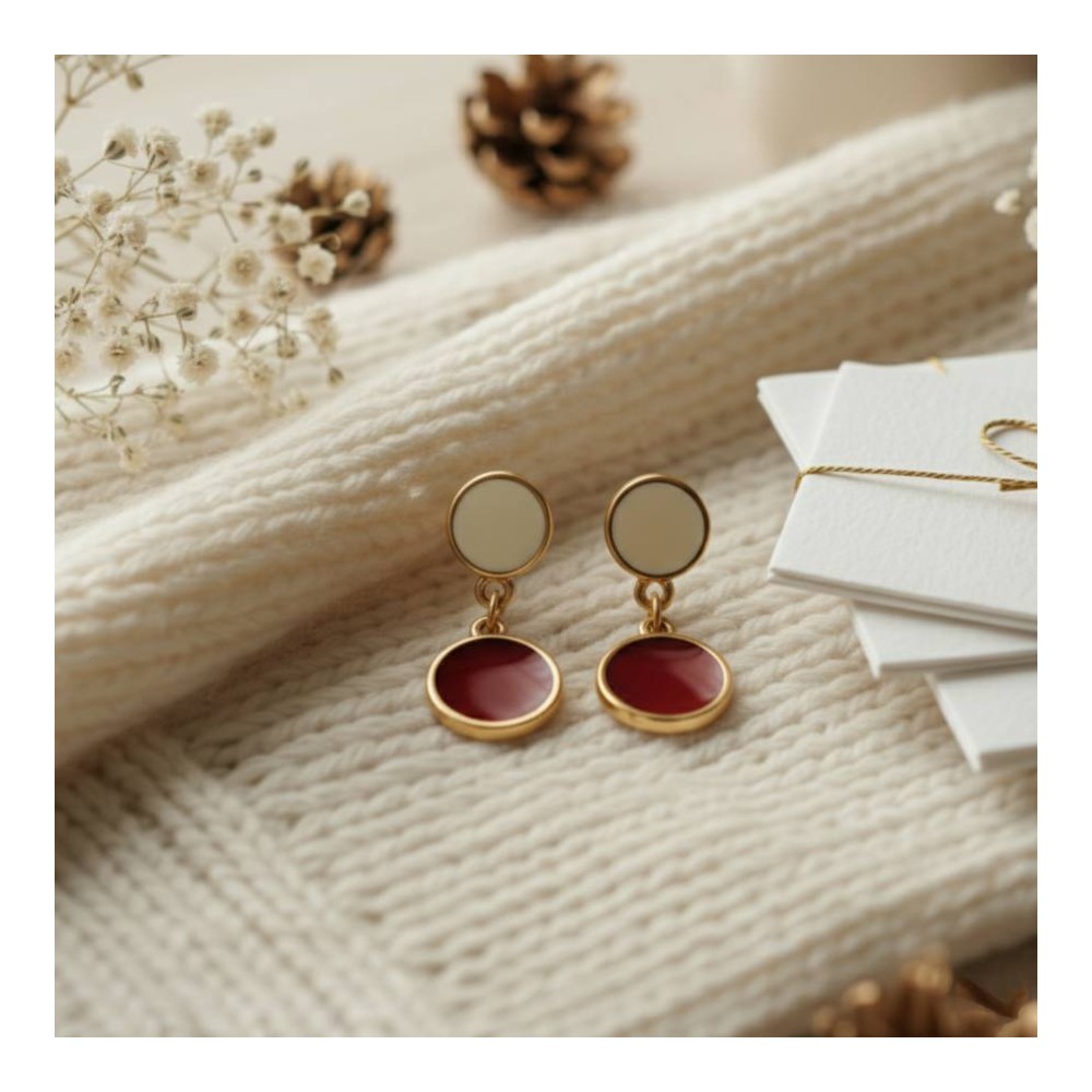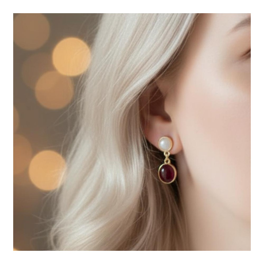 Boucles d'oreille discrètes rouge blanc or - Bijou précieux