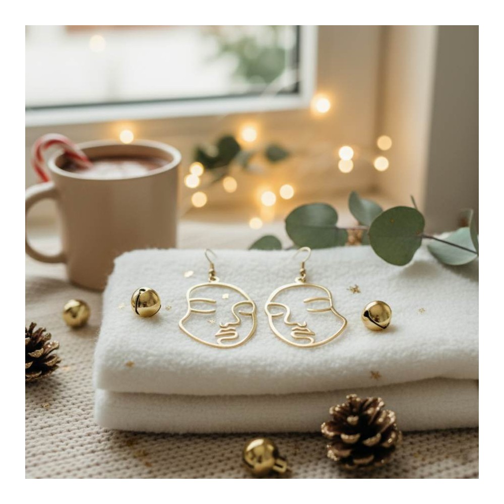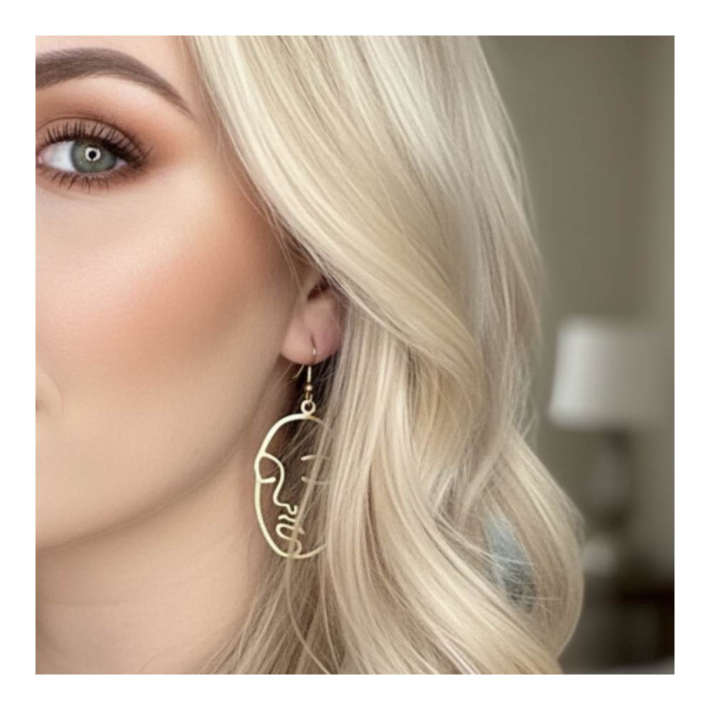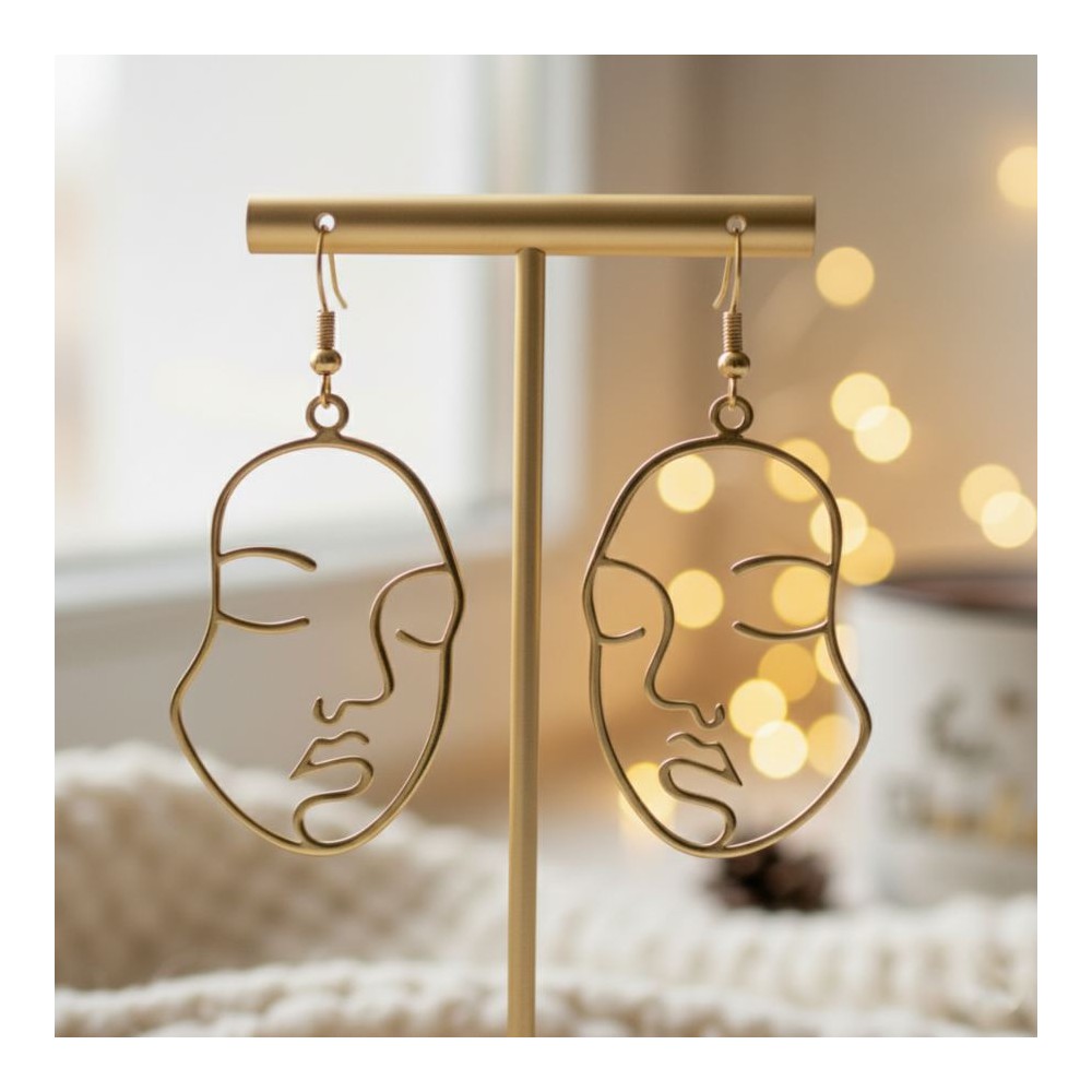 Exprimez votre style avec nos boucles d'oreilles uniques, un véritable hommage à l'art moderne. Ces pièces délicates et audacieuses ajoutent une touche d'originalité à toutes vos tenues. Chaque boucle d'oreille présente un design de visage abstrait en fil doré, dessiné en une ligne continue. Un style minimaliste et contemporain.