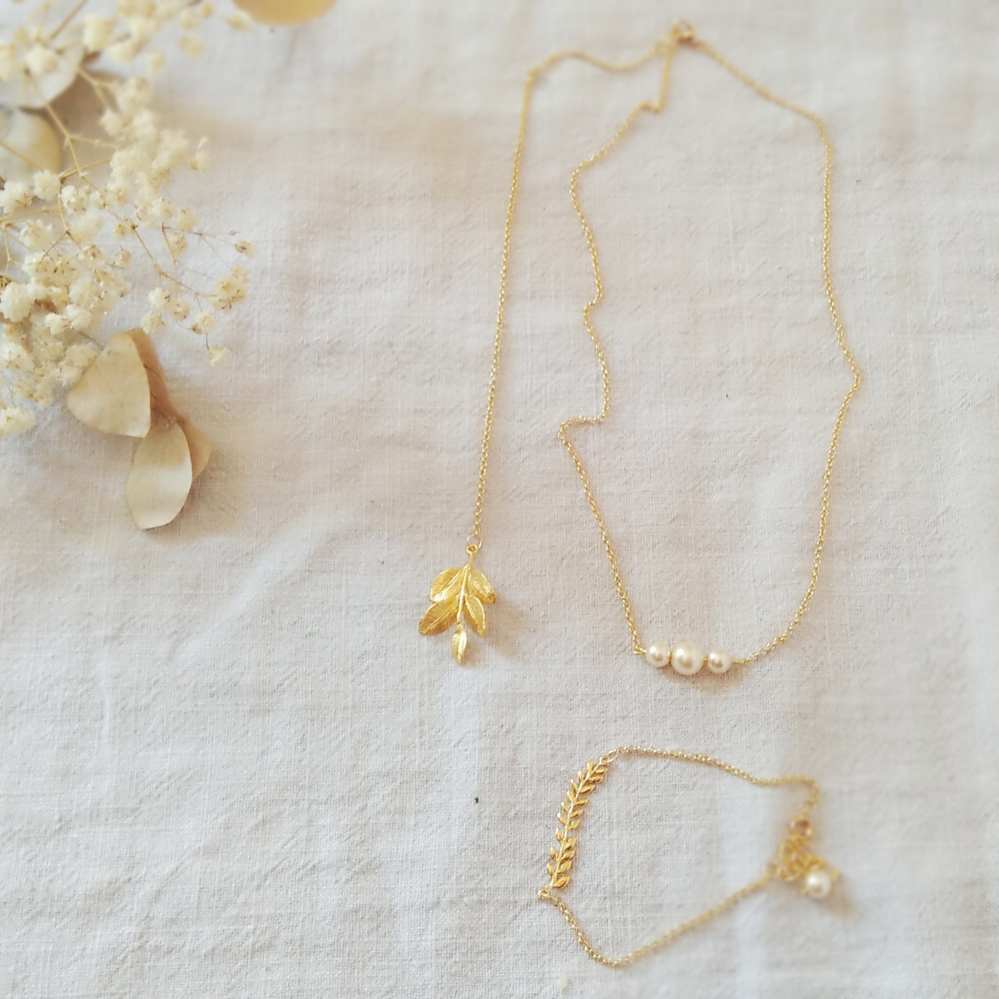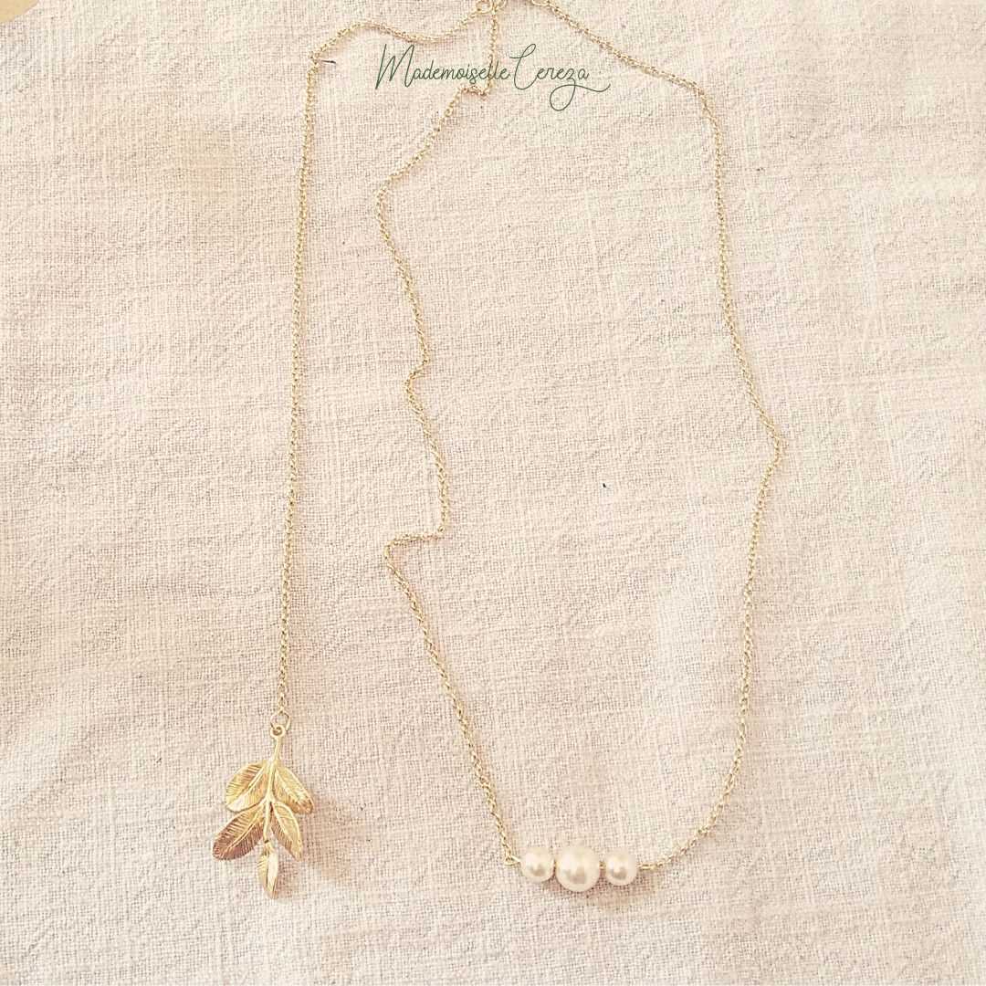 Un collier de dos est à la fois un collier et un bijou de dos ! Il comporte un joli détail sur le devant et un joli détail sur la partie dos. Vous allez mieux vous rendre compte sur la photo du collier de dos Ainoha : 3 perles composent le joli détail du devant du collier, le pendentif feuille sera dans le dos pour habiller un dos nu ♥