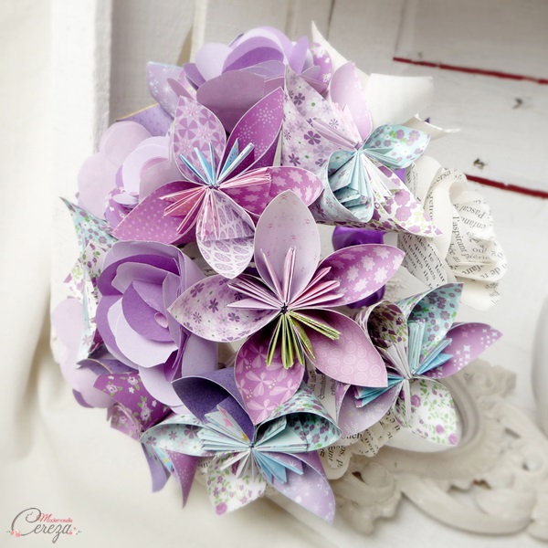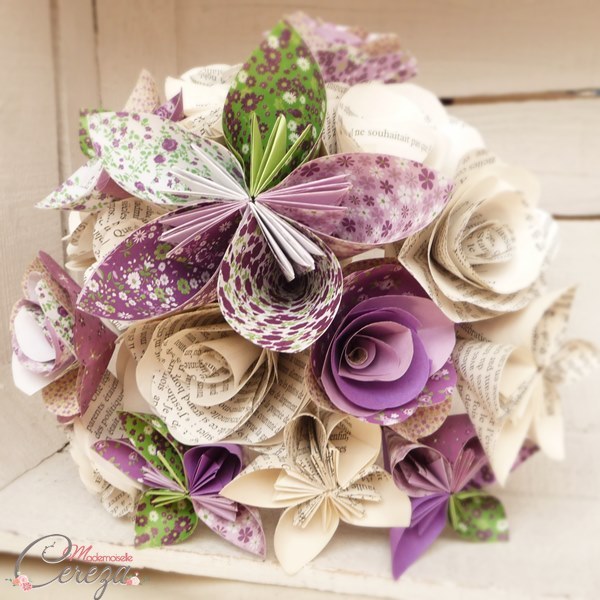 Pour vous inspirer, des exemples de bouquets origami personnalisés pour de jolies mariées :
