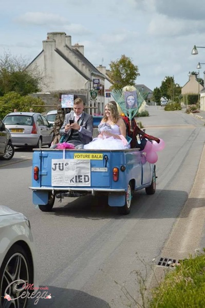 L’idée qui vous met tout de suite dans le thème vintage et USA : l’arrivée des mariée dans une voiture stylée digne d’une jeep de l’armée américaine. Voiture prêtée par un ami, une chance extra !