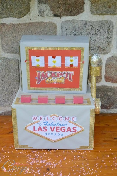 Aurélie a passé un temps fou à préparer des décorations elle-même dont ces deux urnes typiquement américaines. L’une en forme de boite aux lettres US et l’autre en forme de machine à sous très Las Vegas