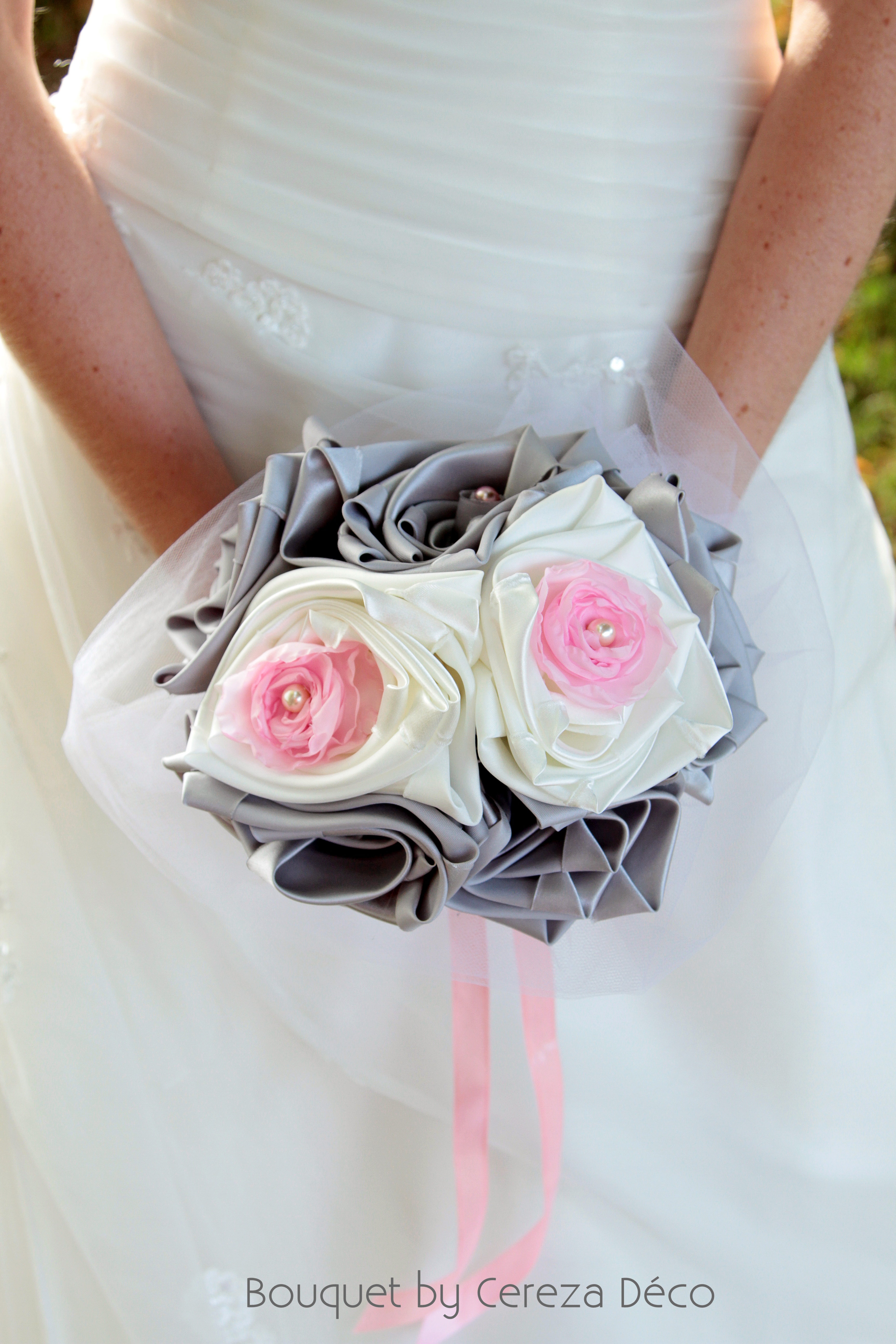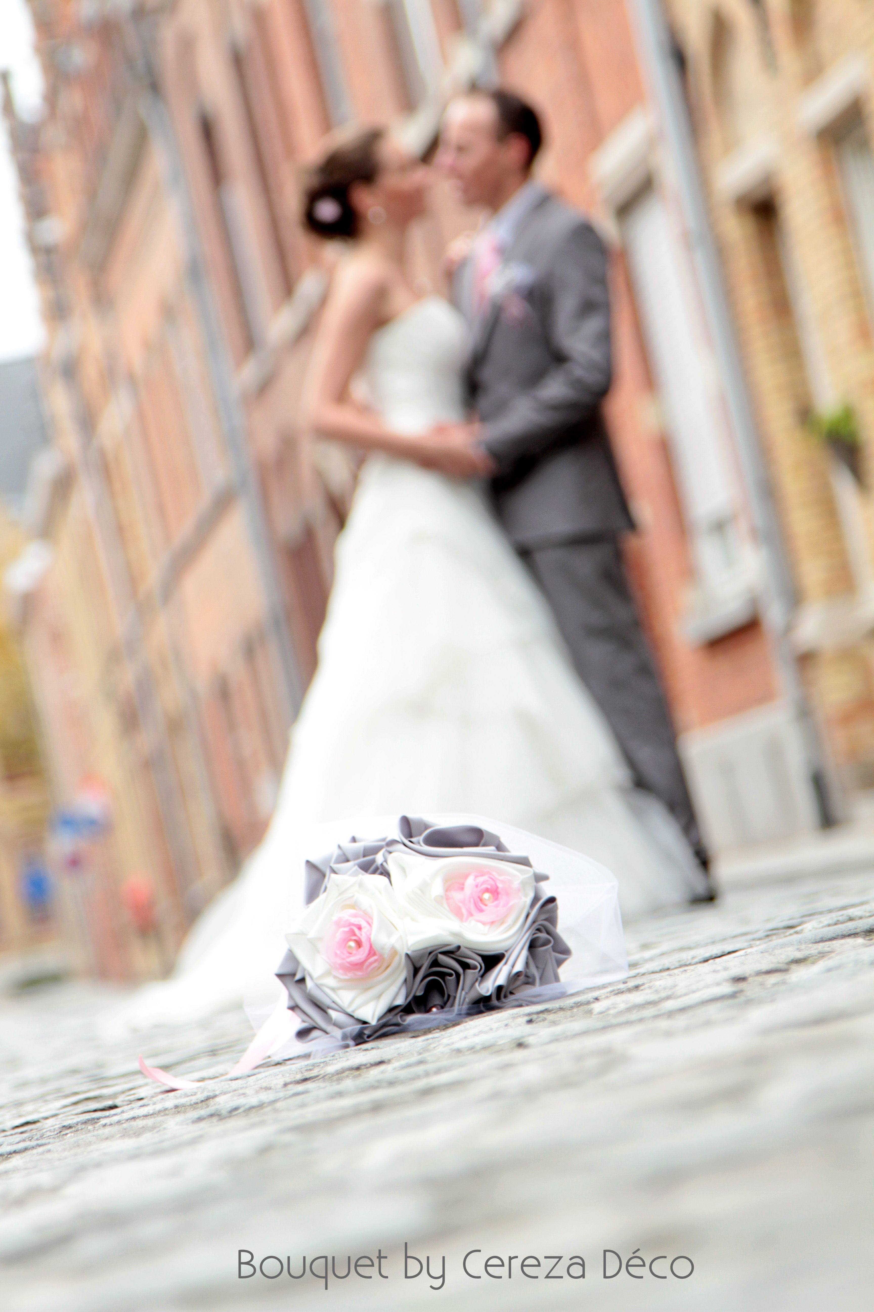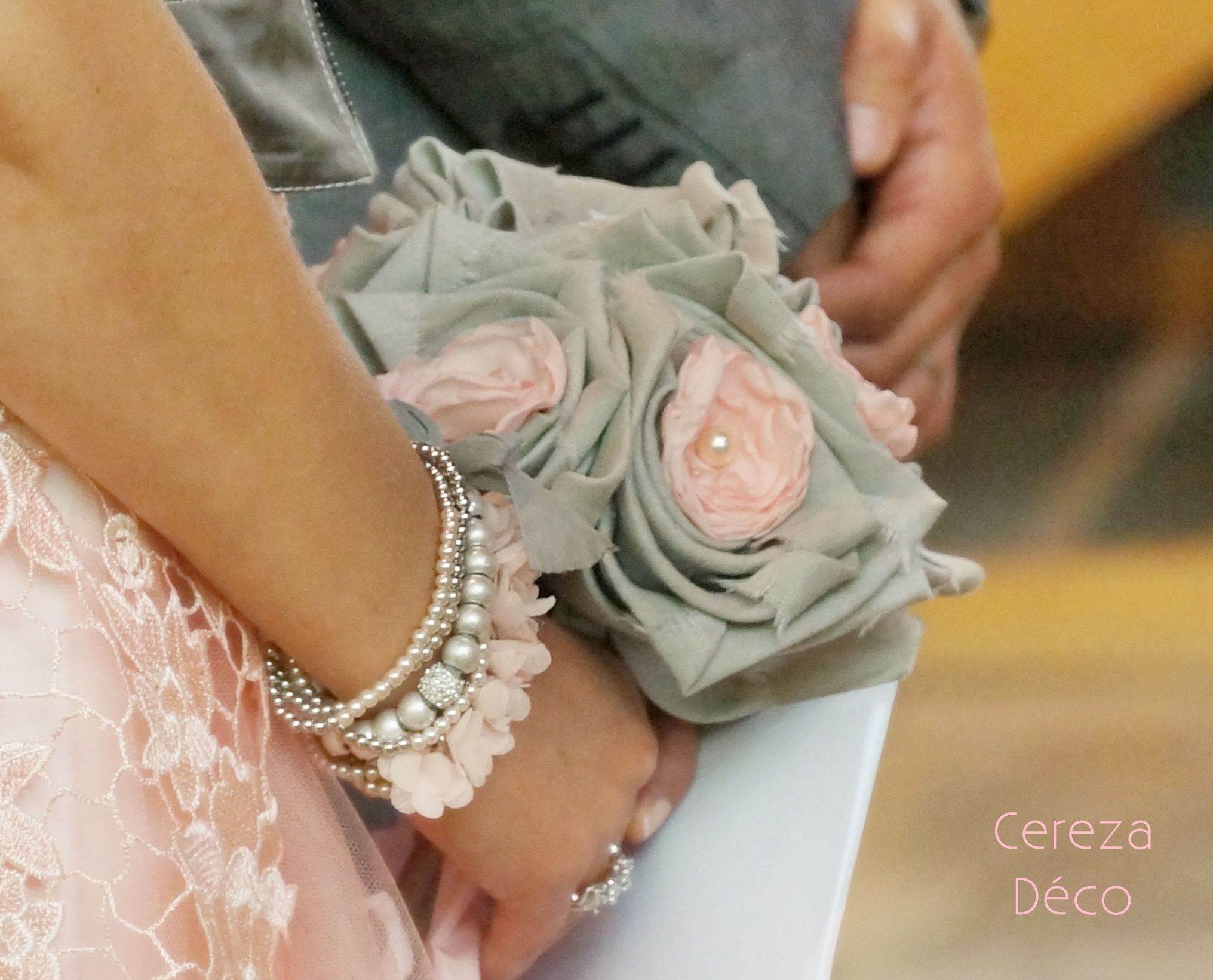 Anne-Sophie & son bouquet de mariée original ivoire, gris argent et touche de rose