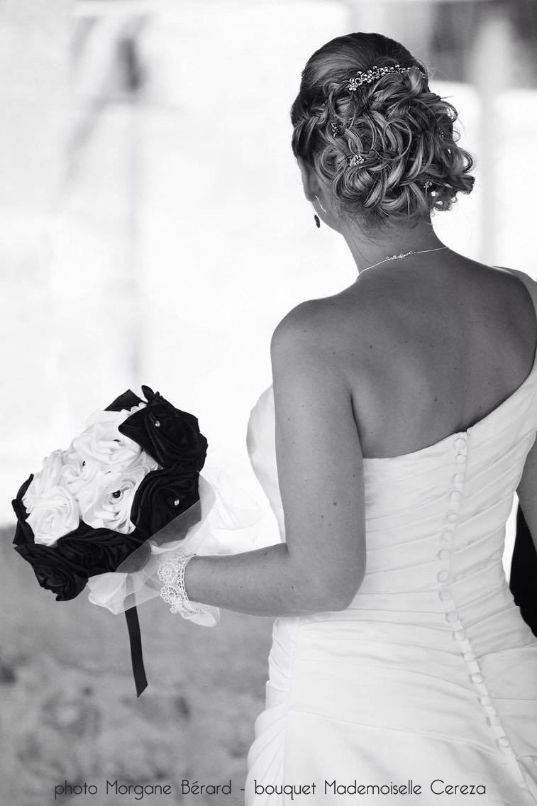 Jennifer et son bouquet de mariée original ivoire et noir XXL