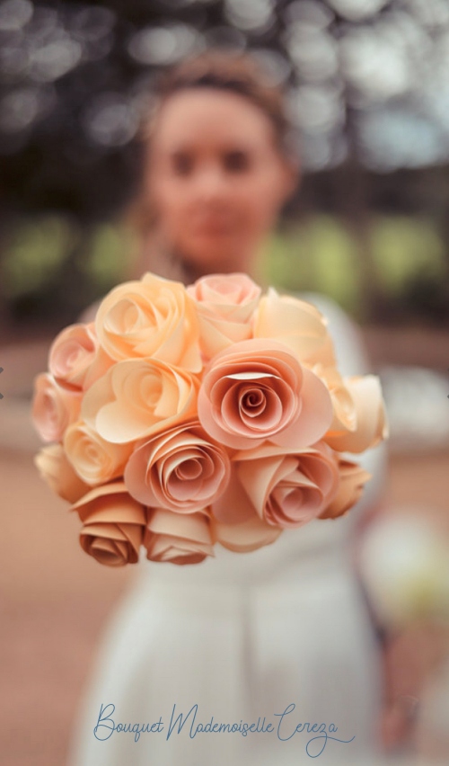 Delphine et son bouquet de mariée origami en fleurs de papier Crazy Love ♥