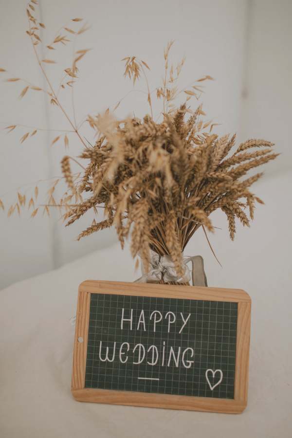 Afin de profiter au maximum, je vous conseille de faire appel à deux ou quatre personnes pour faire le service, la vaisselle, gérer l’intendance. Pour les mariés d’été, prévoyez des ventilateurs (surtout pour les personnes âgées) et de l’eau en grande quantité. Afin d’avoir une harmonie sur les photos à la mairie, nous avons fourni à tout le monde un masque blanc. Pour une ambiance champêtre et fun, prévoyez des jeux d’extérieur et une playlist immense (il n’y a jamais assez de musique sur plusieurs jours!) En parallèle des photos de notre photographe, nous avons filmé la cérémonie à la mairie ainsi que pleins d’autres moments de la journée avec notre « go pro ».