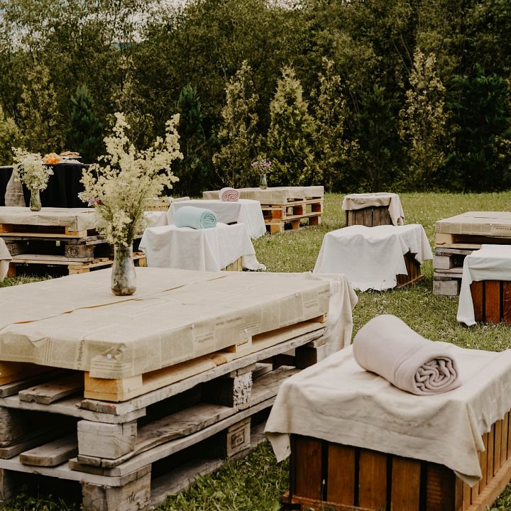 – Le stockage du mobilier/vaisselle/déco. La solution : la vaisselle peut-être fournie par votre traiteur selon la prestation que vous prenez auprès de lui et généralement vous récupérez le matériel loué la veille, vous ne vivrez pas dans un garde-meuble pendant des semaines 😀