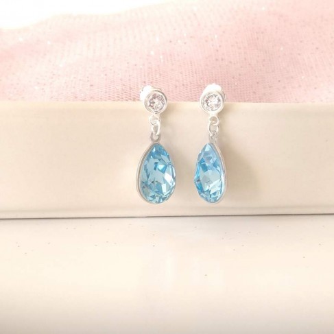 Boucles d'oreille mariée goutte strass aigue marine Swarovski - "Letizia"