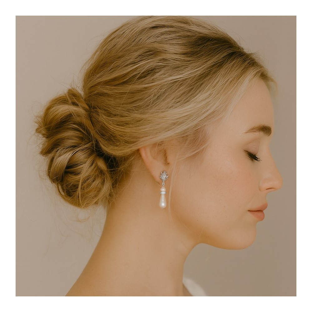 Boucles d'oreille mariee perles et strass zircon "Athénaïs"