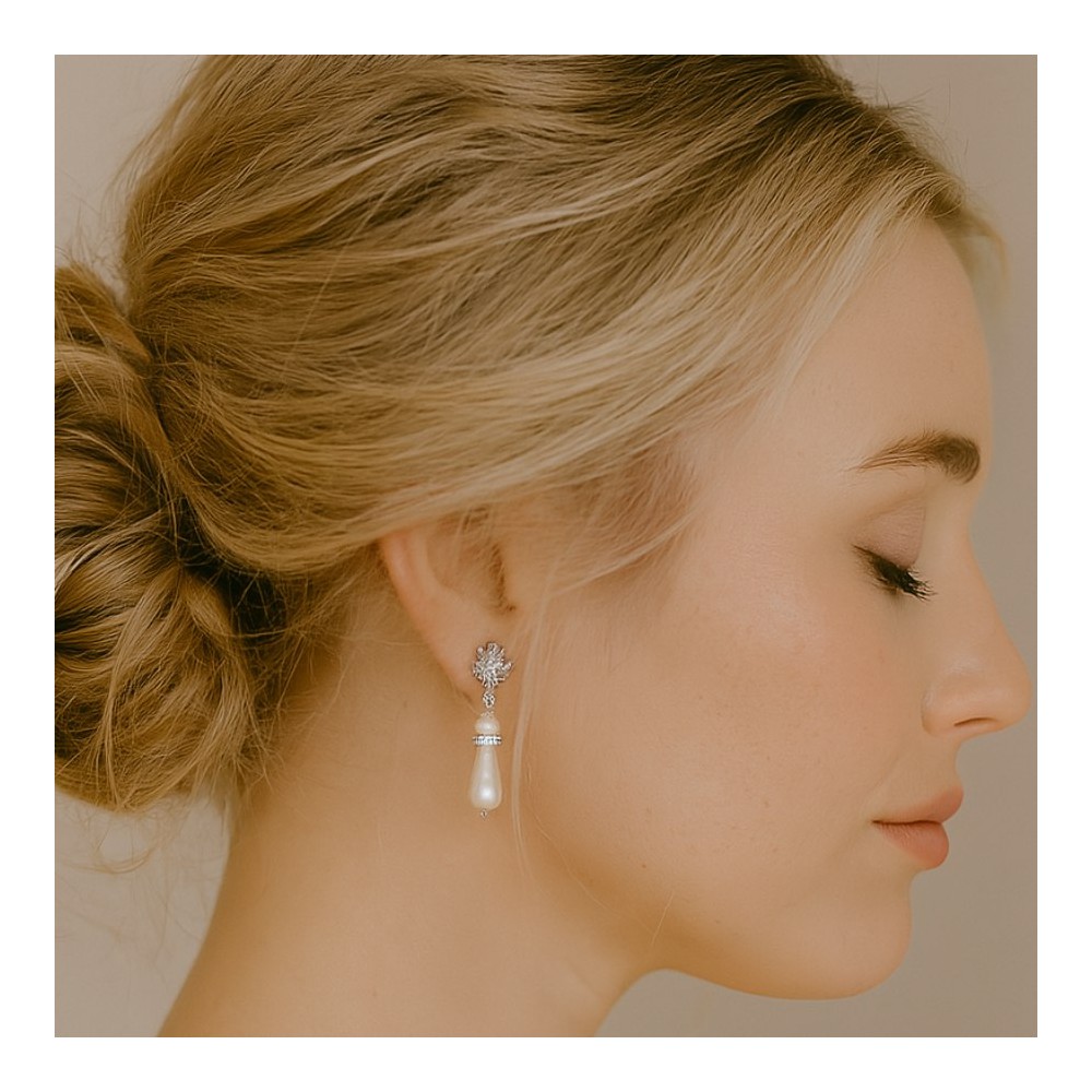Les boucles d'oreille mariage "Athénaïs" sont montées sur un support pour oreilles percées garanti sans nickel.