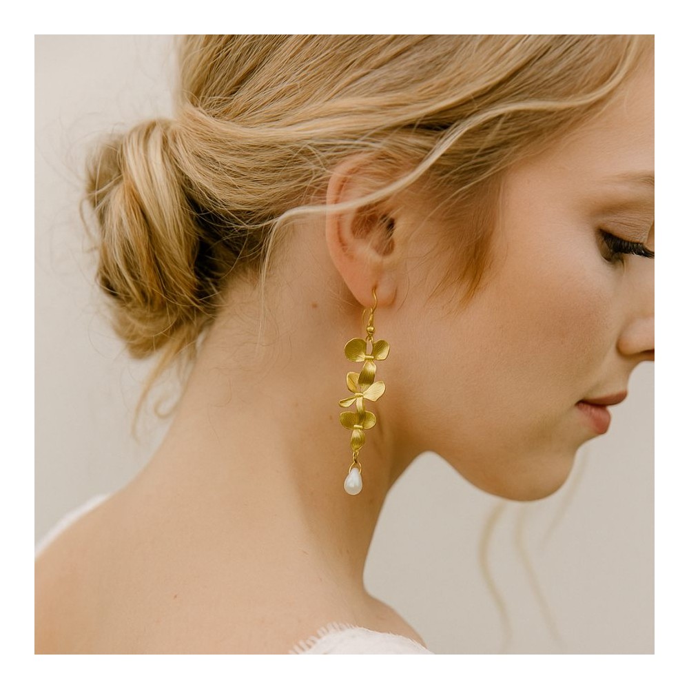 Fleurs et perles sont les adorables petits détails des boucles de mariée Bella qui vous feront craquer ♥ Chaque boucle est composée de 3 fleurs et une perle en forme de goutte, le tout monté sur un crochet d'oreille.