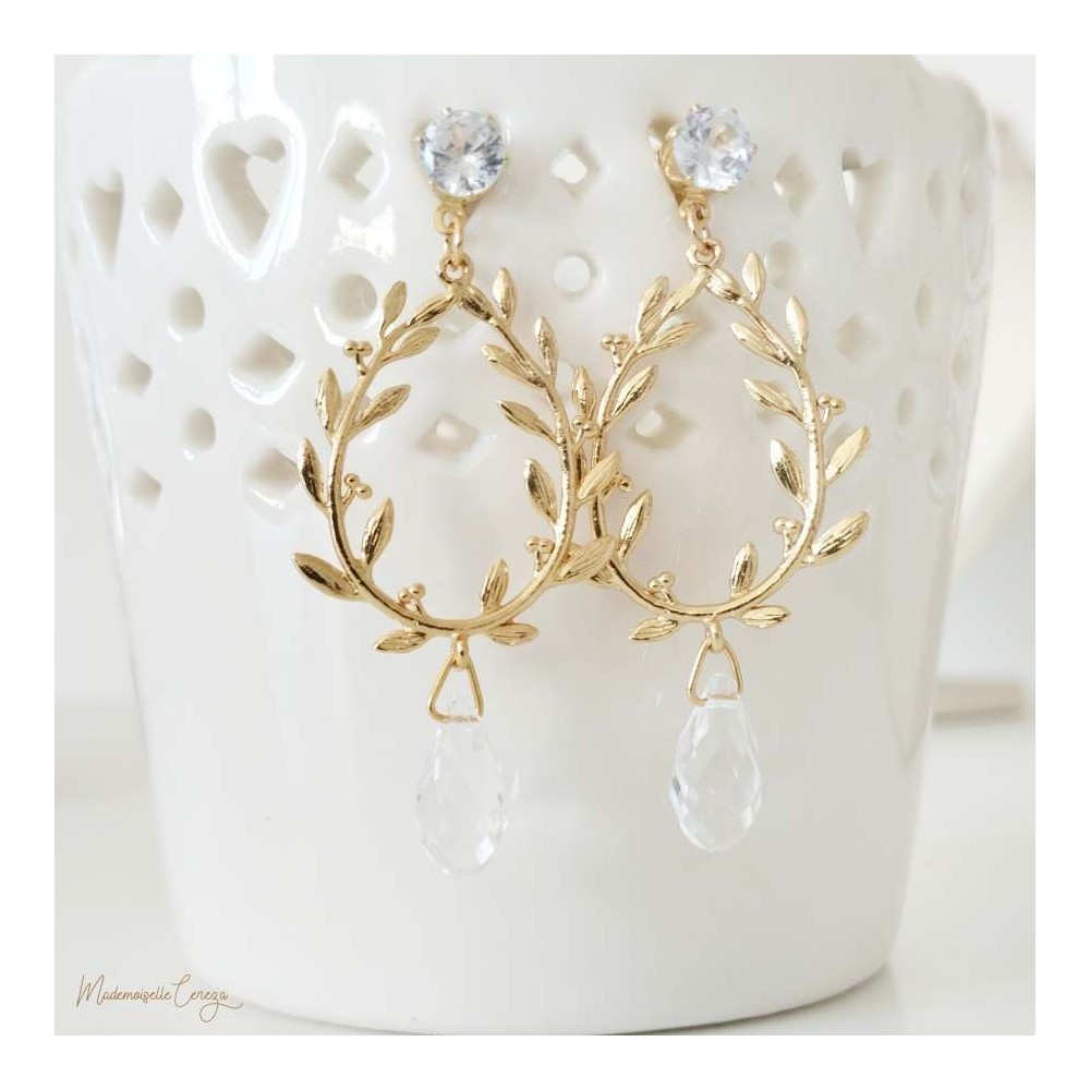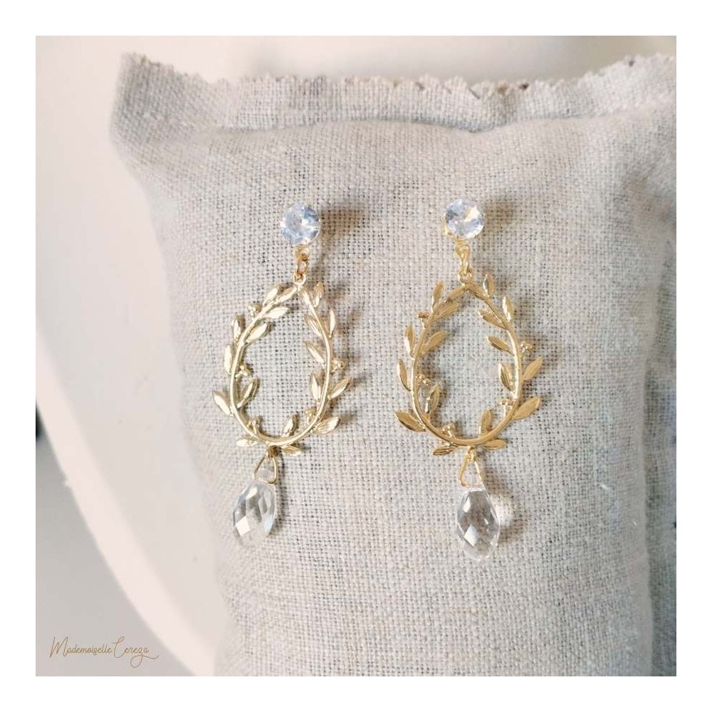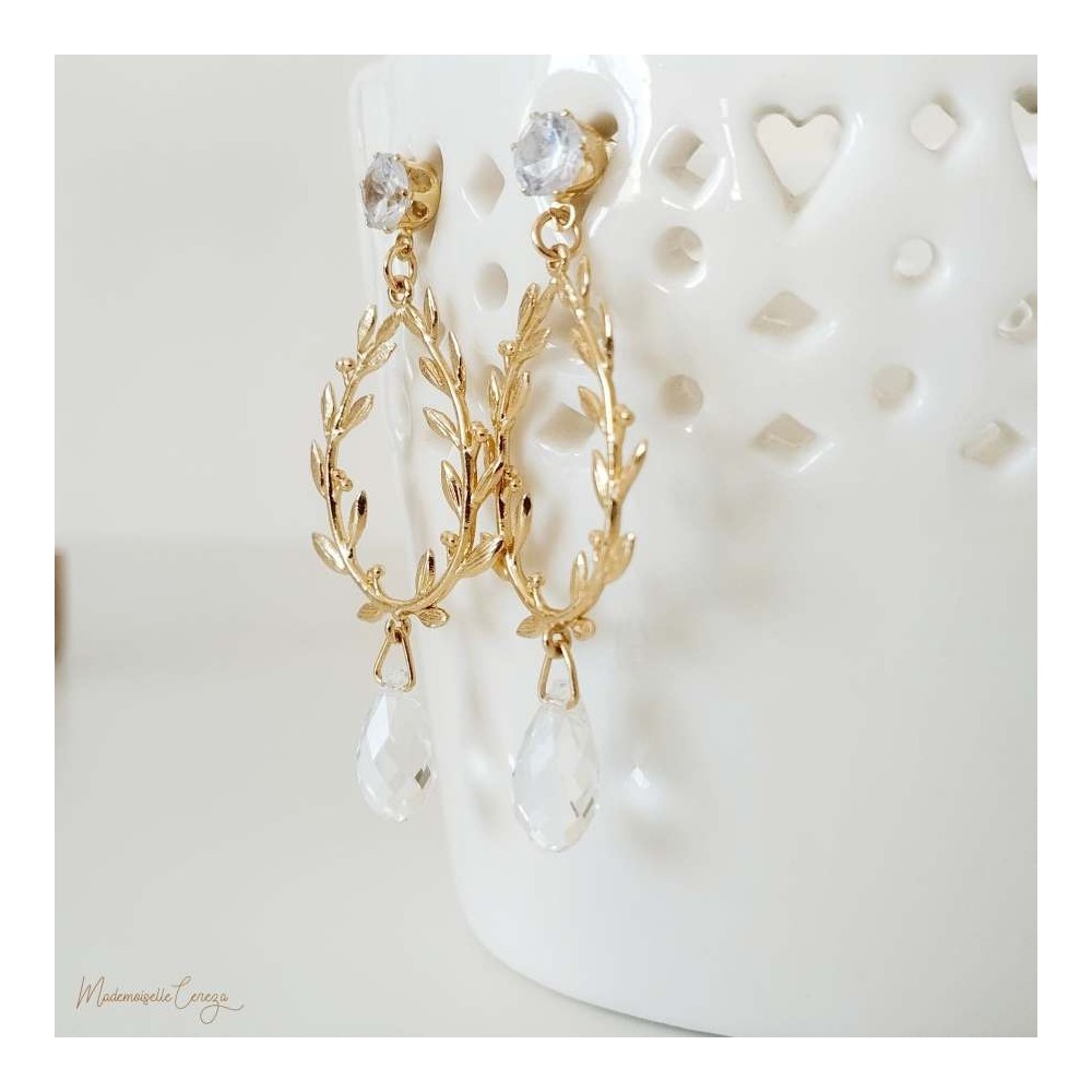 Boucles mariee Swarovski et feuille d'olivier bohème chic "Shana"