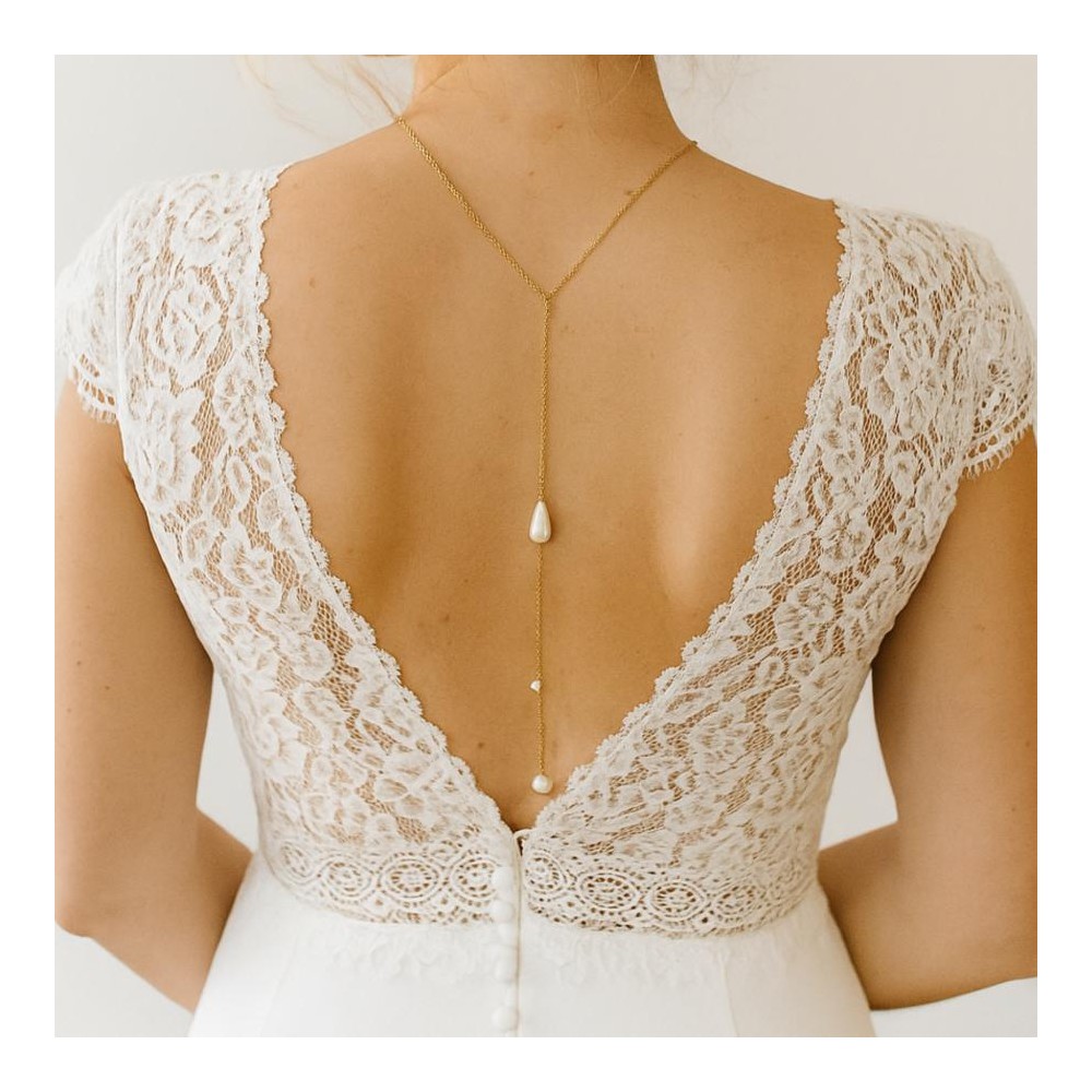 Le collier de dos Giulia et sa perle goutte, le bijou de mariage parfait à porter avec une robe de mariée dos nu ♥
