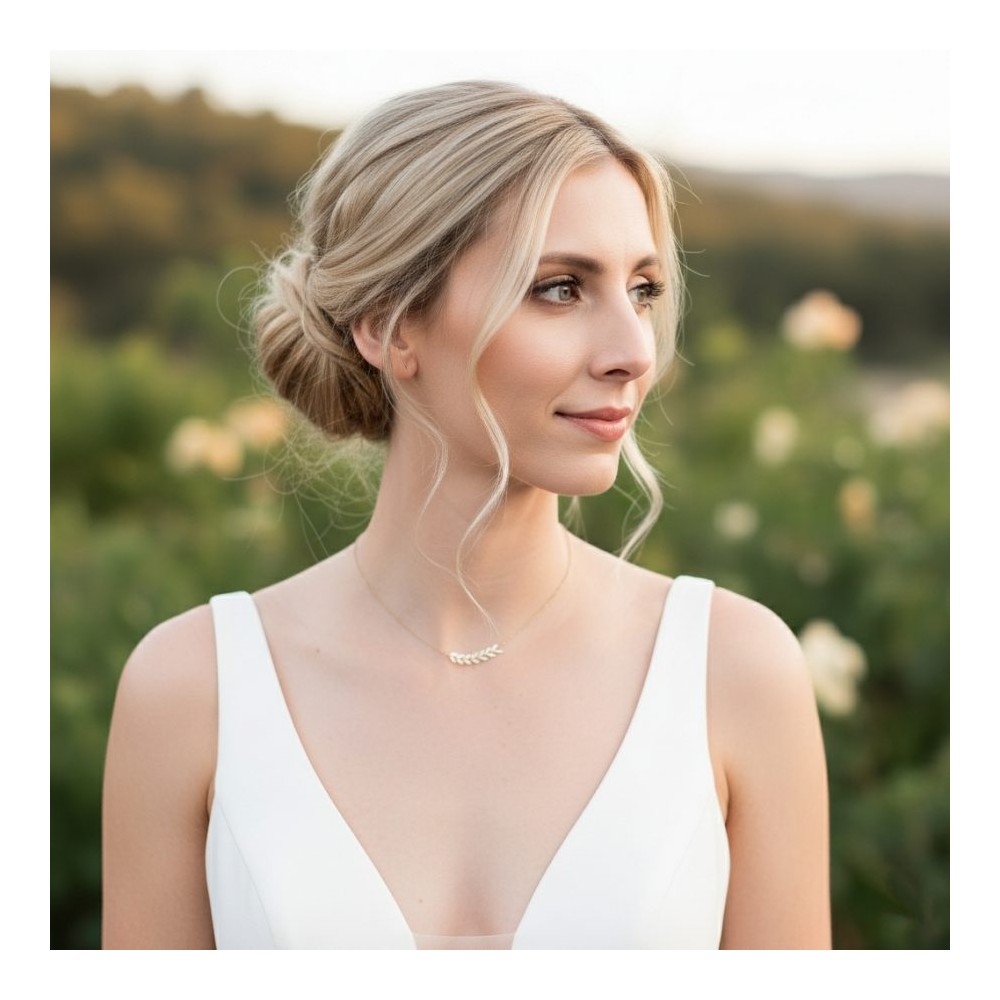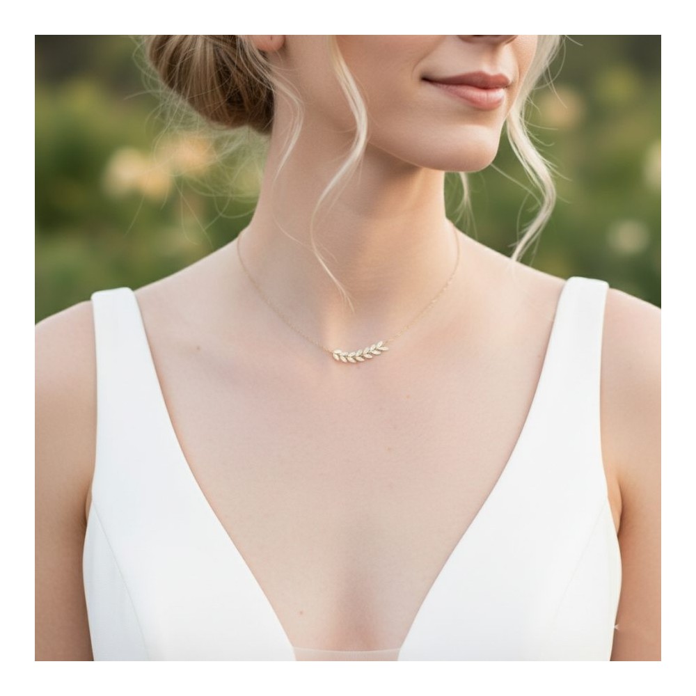 Un motif d'épis pour une touche de fraicheur dans ce collier de mariée minimaliste.
