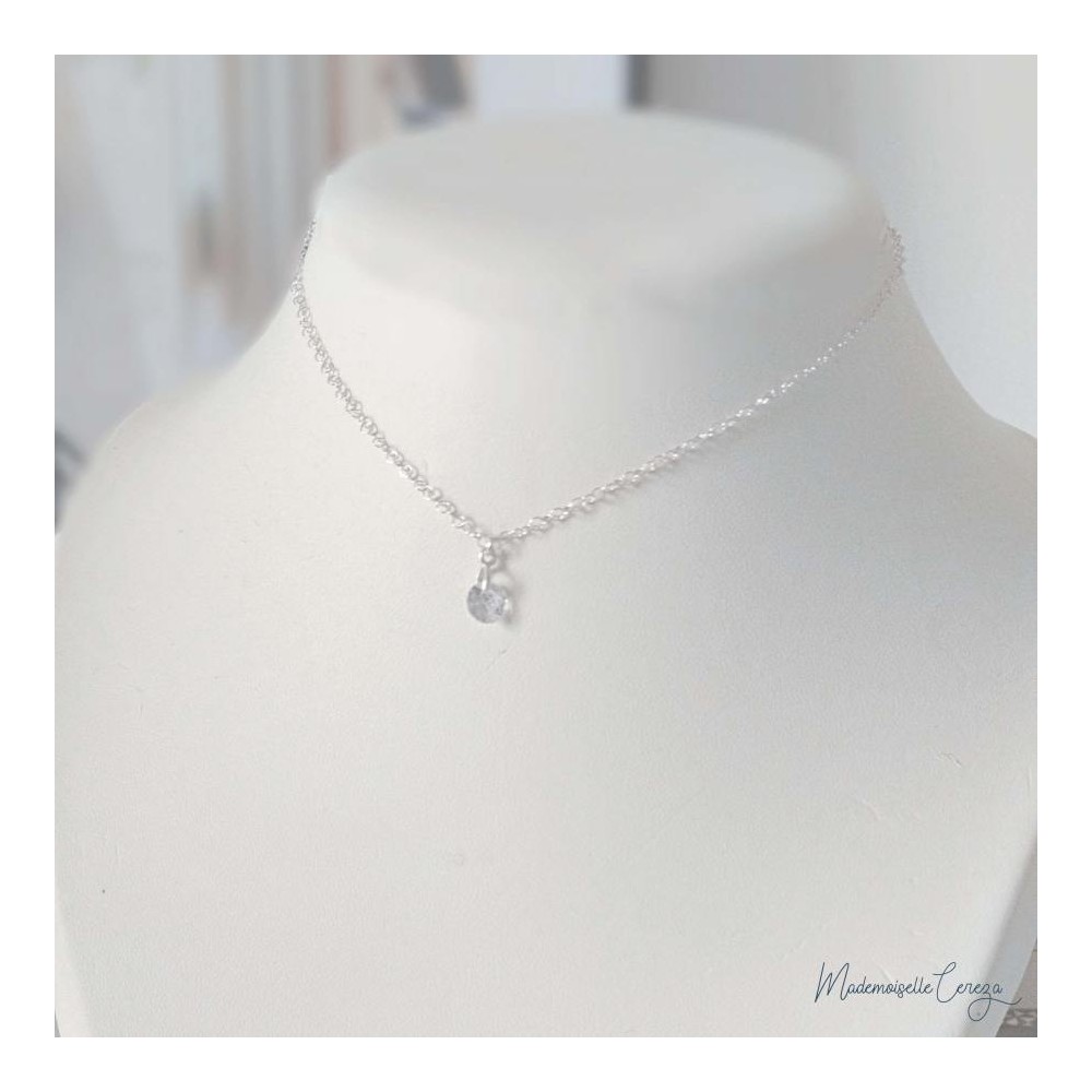 Collier mariage pendentif strass zircon minimaliste "Erin" - Bijou mariage personnalisable