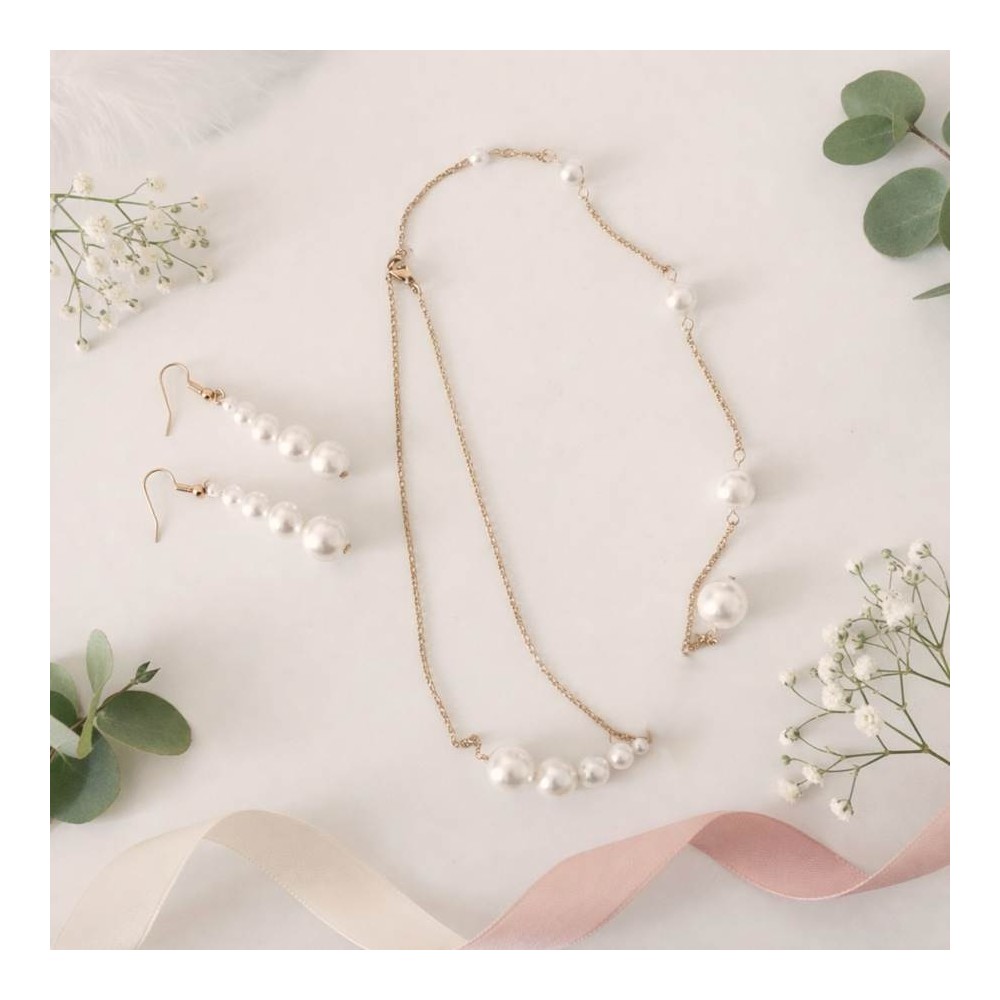 Personnalisez votre parure de bijoux de mariée bohème chic en finition dorée ou argentée, en perles blanches ou ivoire en choisissant dans les options pour que vos bijoux de mariée soient parfaitement assortis avec votre robe.